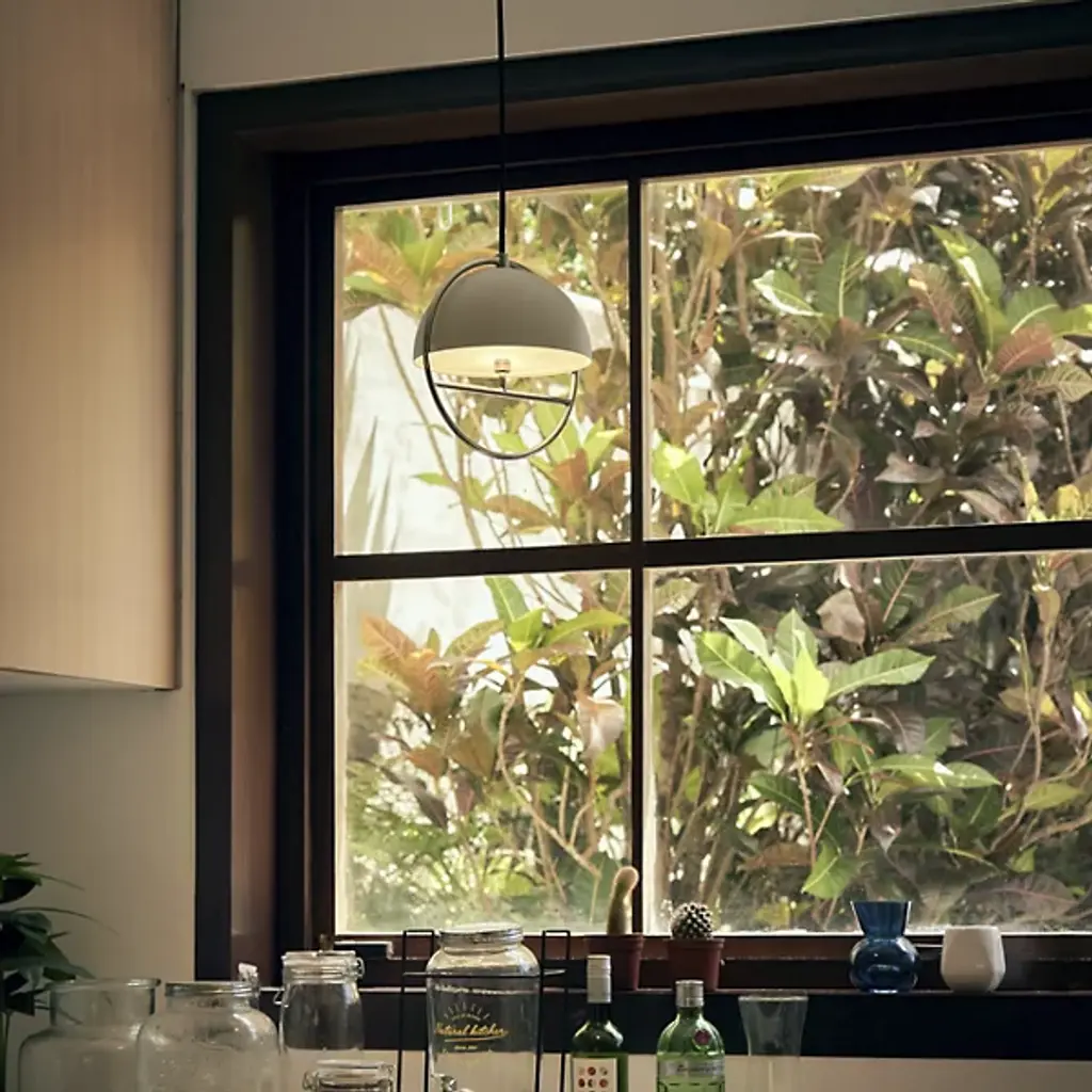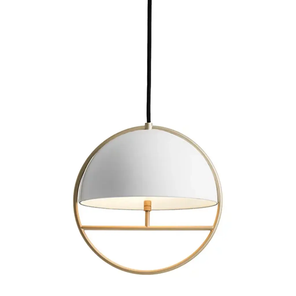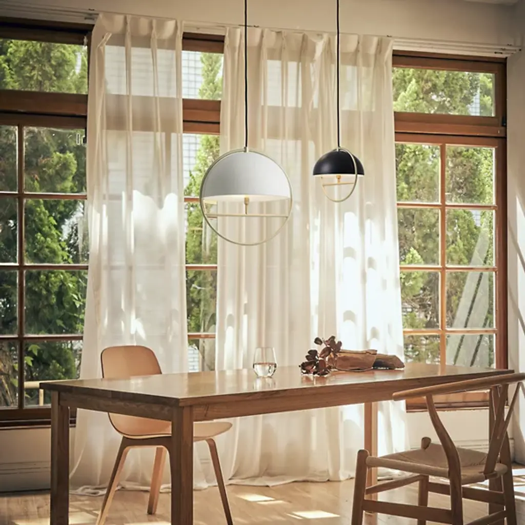 Inspired by the tone-setting silhouette of the oriental garden’s moon gate. The Huan Pendant from Seed Design creates a calming atmosphere during the day with its balanced shapes and at night through its diffused light. It hangs gracefully with a slender cord that invites placement as part of a series over a table or on its own. The clean metal frame references the moon gate with a circular outline. This outline stands out thanks to its contrasting finish against the shade. The hemisphere shade shields the eye from side glare and directs light down into a soft pool of illumination.