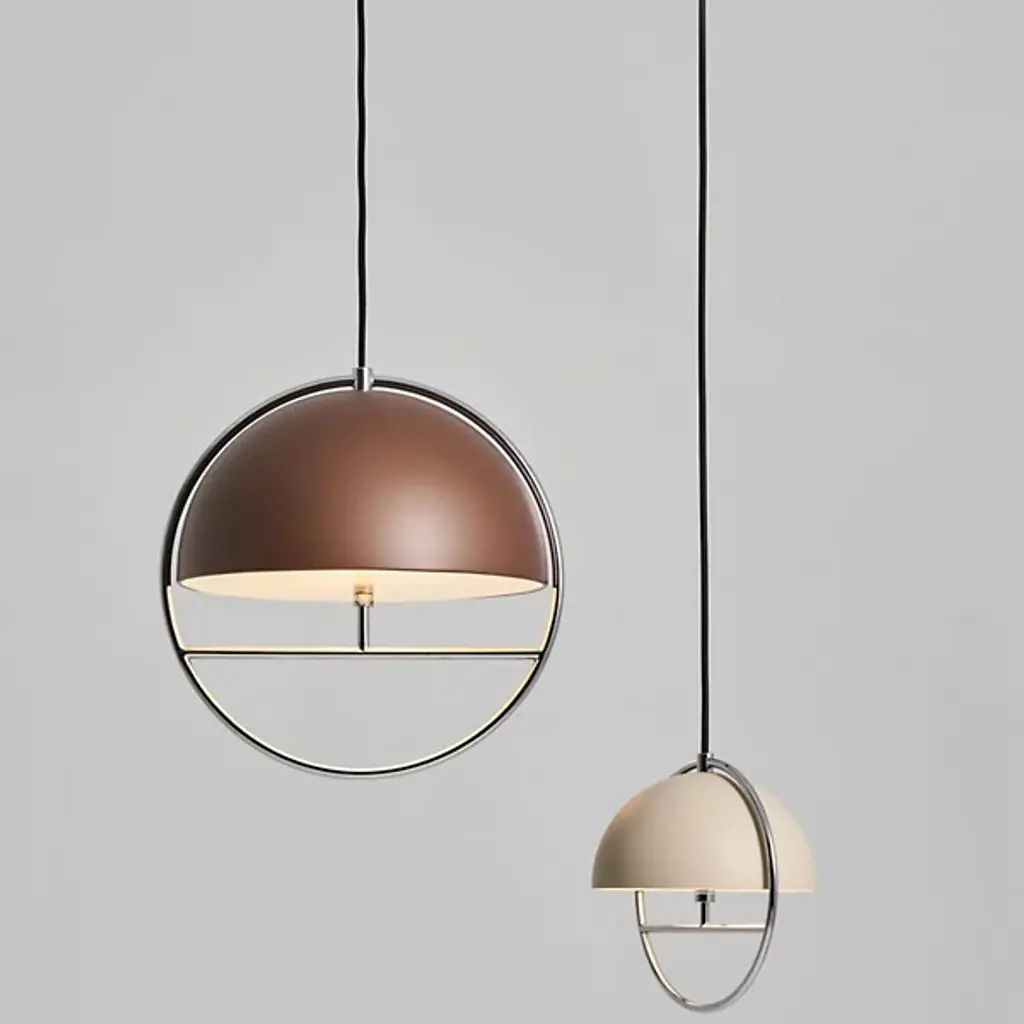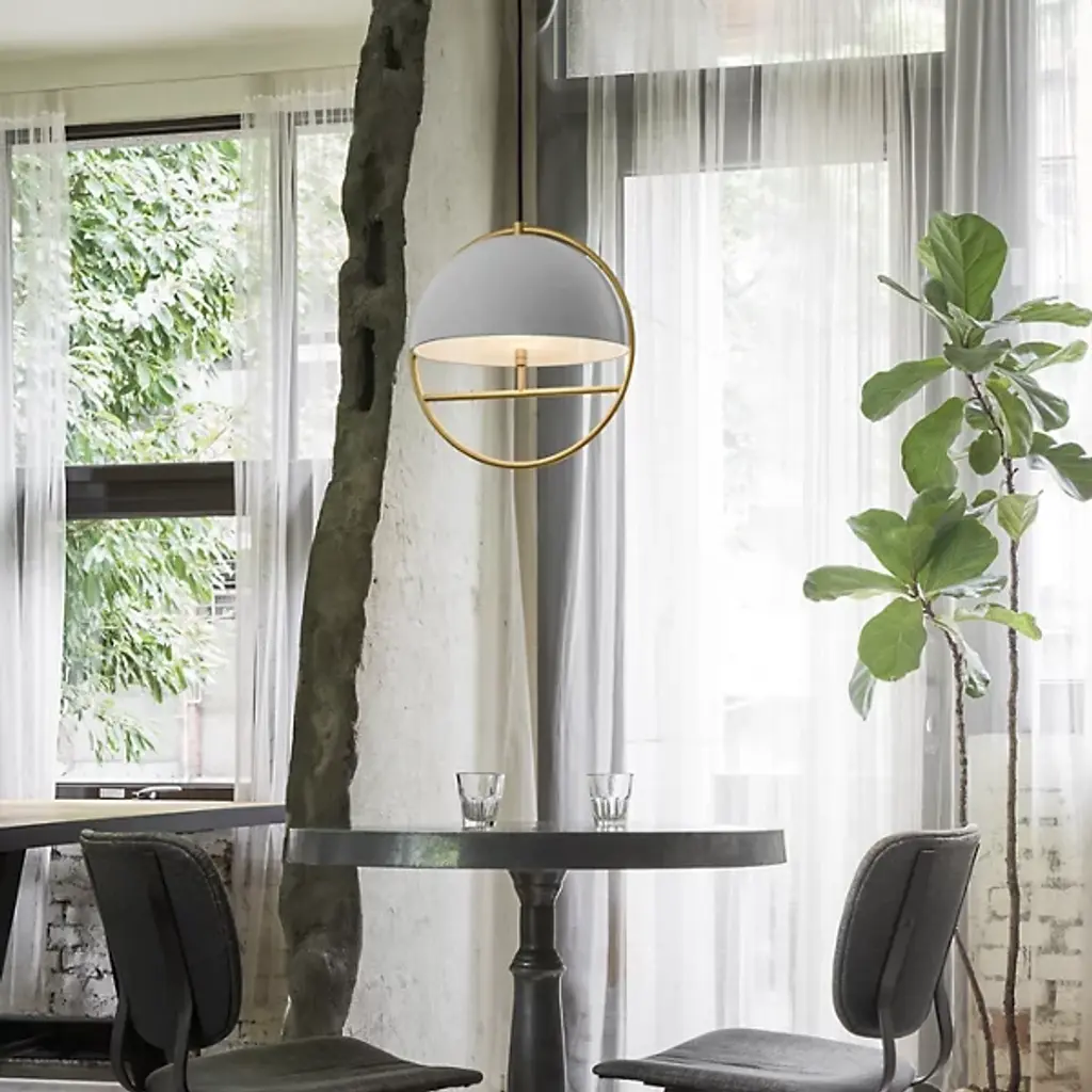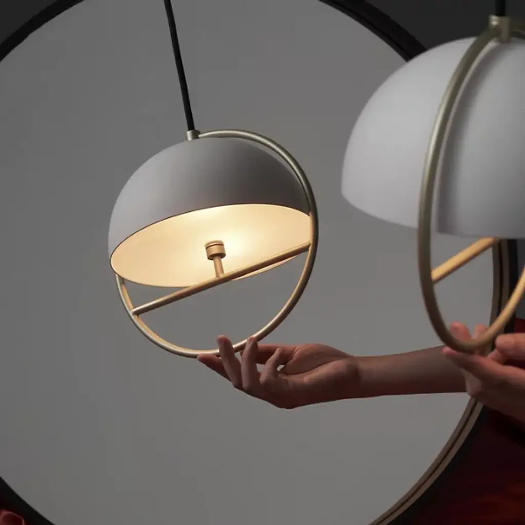 Inspired by the tone-setting silhouette of the oriental garden’s moon gate. The Huan Pendant from Seed Design creates a calming atmosphere during the day with its balanced shapes and at night through its diffused light. It hangs gracefully with a slender cord that invites placement as part of a series over a table or on its own. The clean metal frame references the moon gate with a circular outline. This outline stands out thanks to its contrasting finish against the shade. The hemisphere shade shields the eye from side glare and directs light down into a soft pool of illumination.