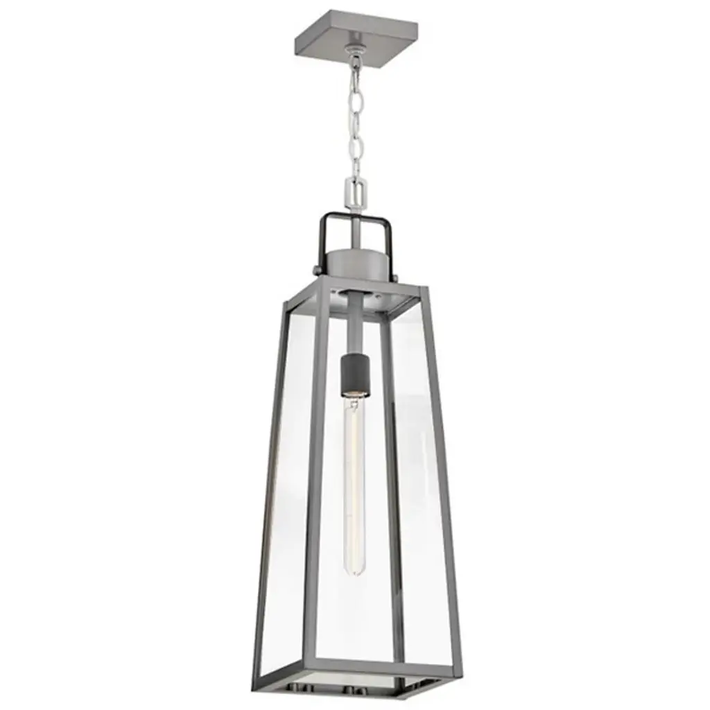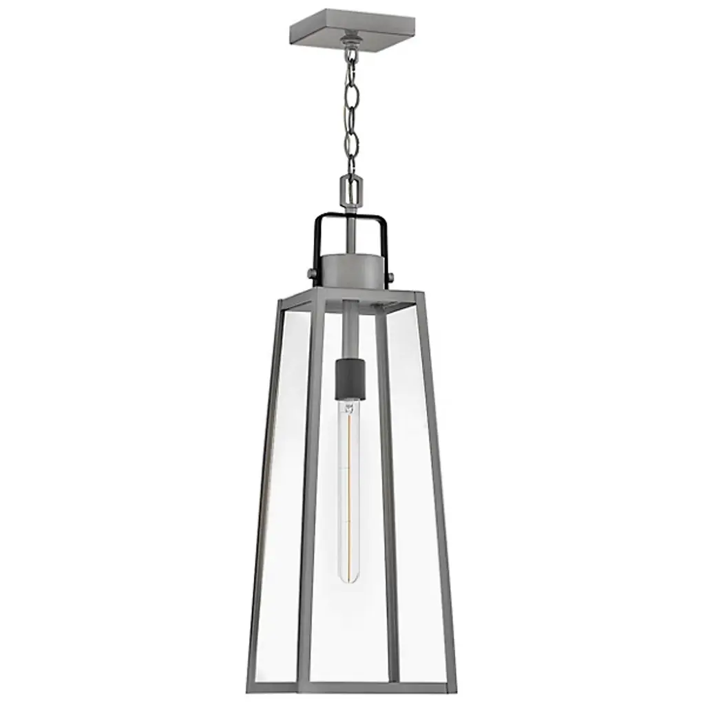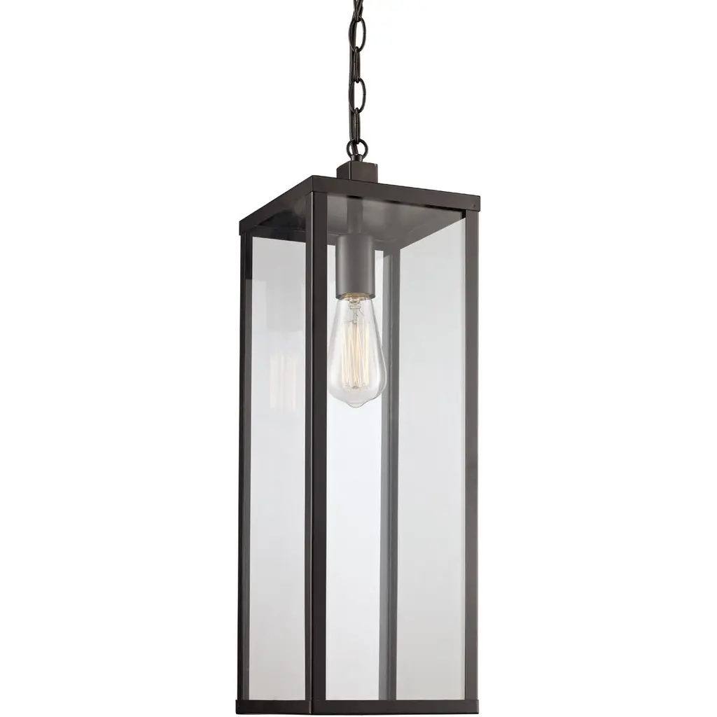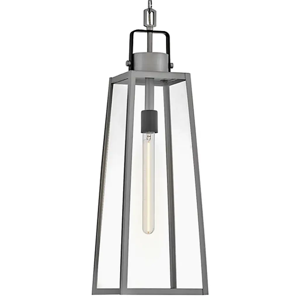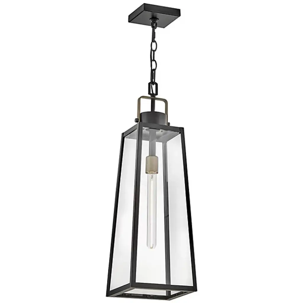 The Hugh Post Light from Lark enhances your outdoor space with a sleek transitional style. It features a trapezoidal design and highlights bold, oversized clear glass panes framed by carefully selected two-tone metal finishes, imparting a modern edge to any setting. For optimal effect, pair it with a tubular vintage filament bulb to accentuate porches, patios, or any exterior area. This will enhance this post light's presence with nostalgic charm and illuminate your outdoor ambiance with sophisticated flair.
