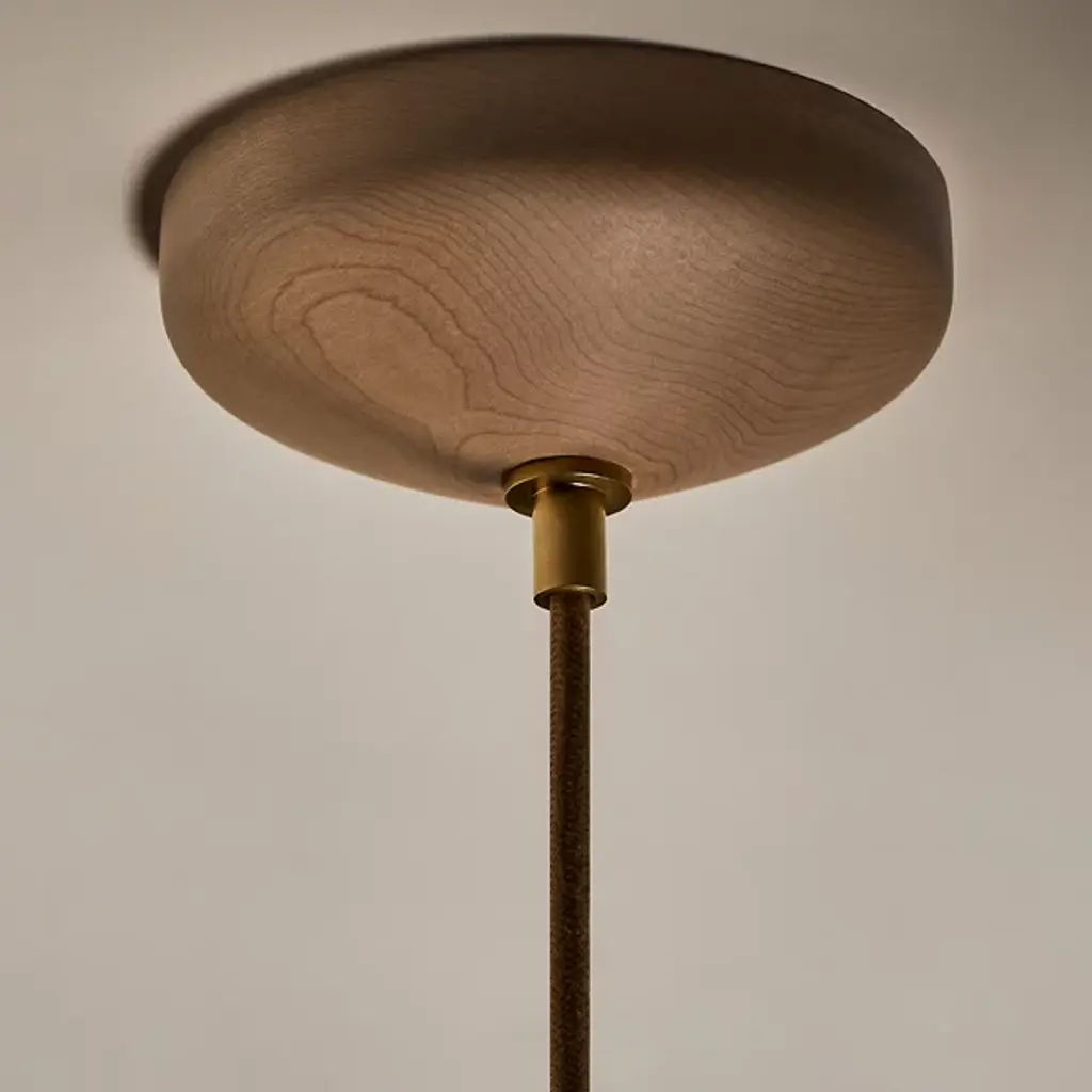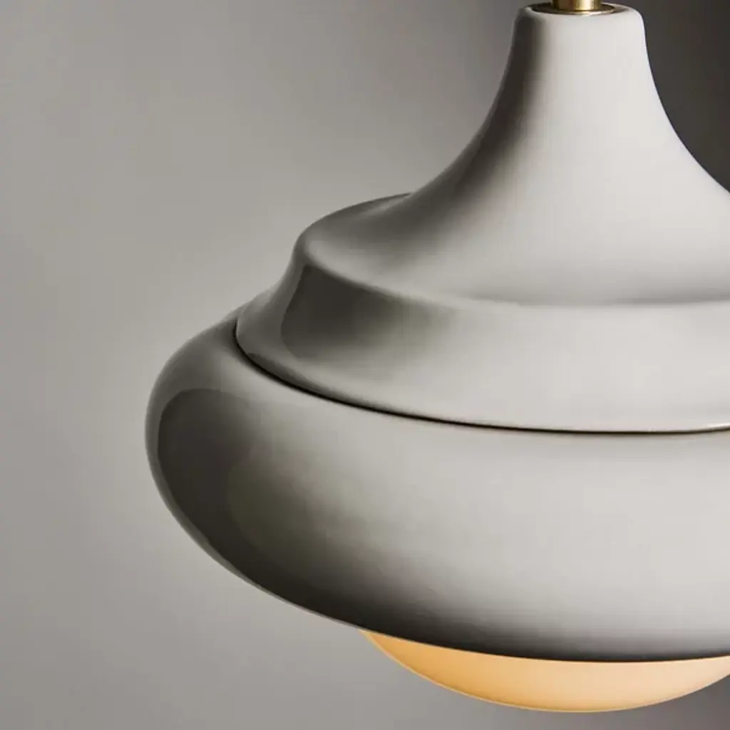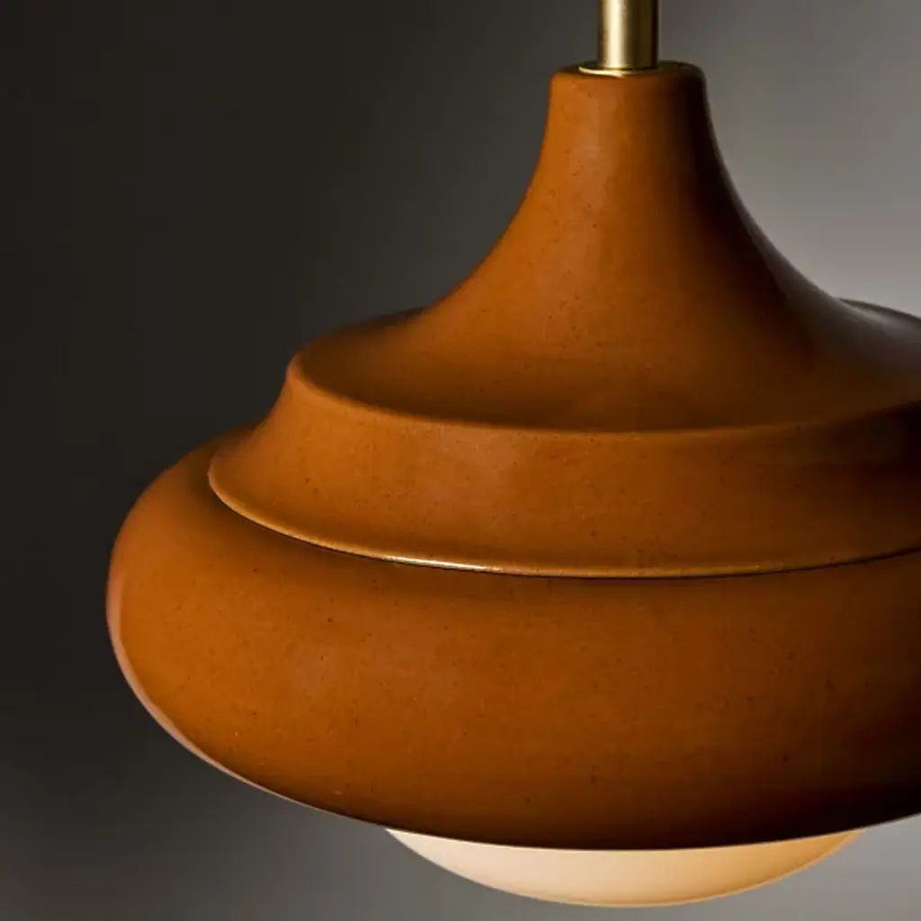 Elevate your interior spaces with the casual, California Modern elegance of the Humboldt 02 LED Pendant from Roll & Hill. Made in the USA, a central woven cord suspends this pendant and features a sophisticated, layered design. Energy-efficient LED lamping is housed in a round brass casing with a translucent glass dome. A “donut” style ring of stoneware is complemented by a flared upper housing, with the vibrant glaze of the ceramic adding rich colors to the simple, modern forms.