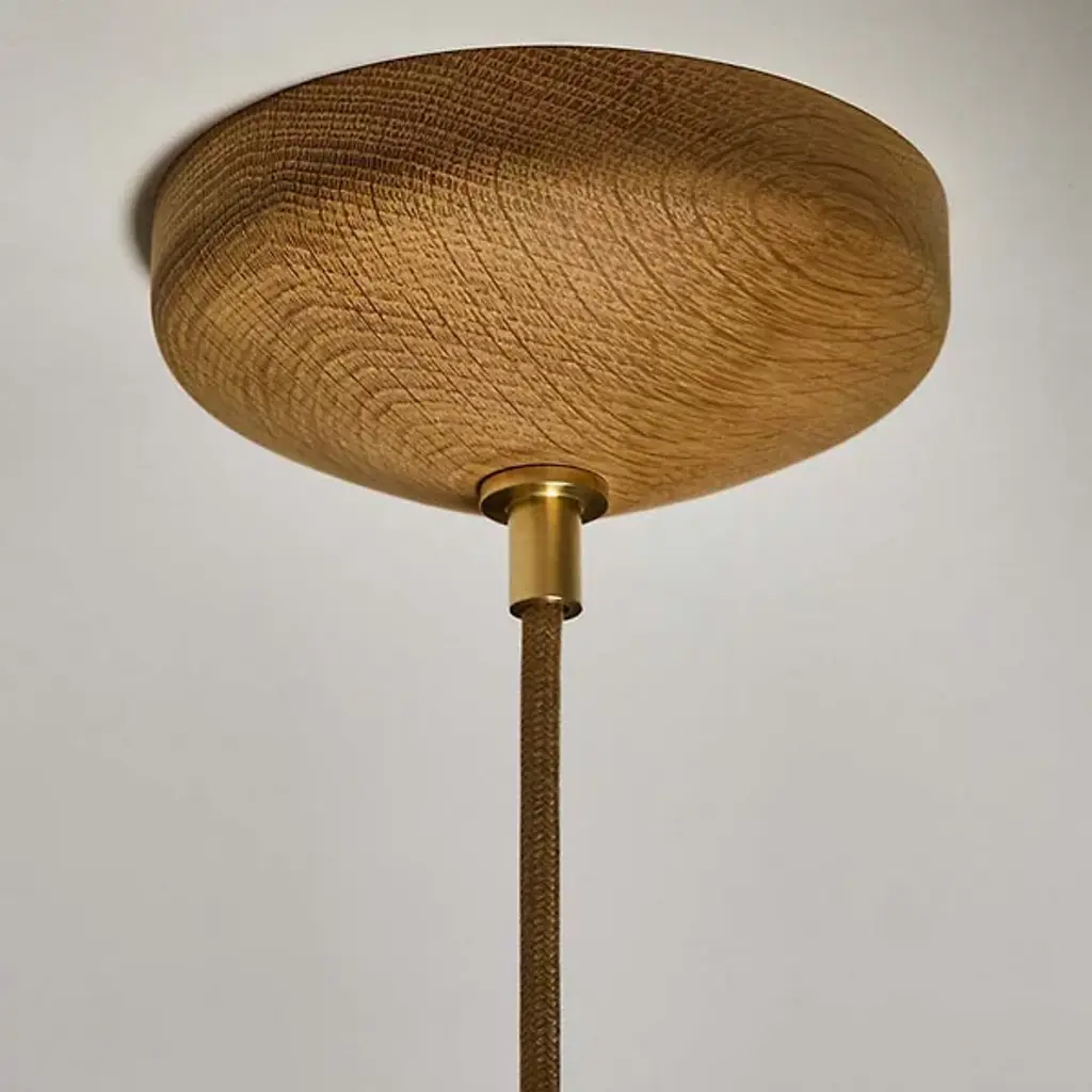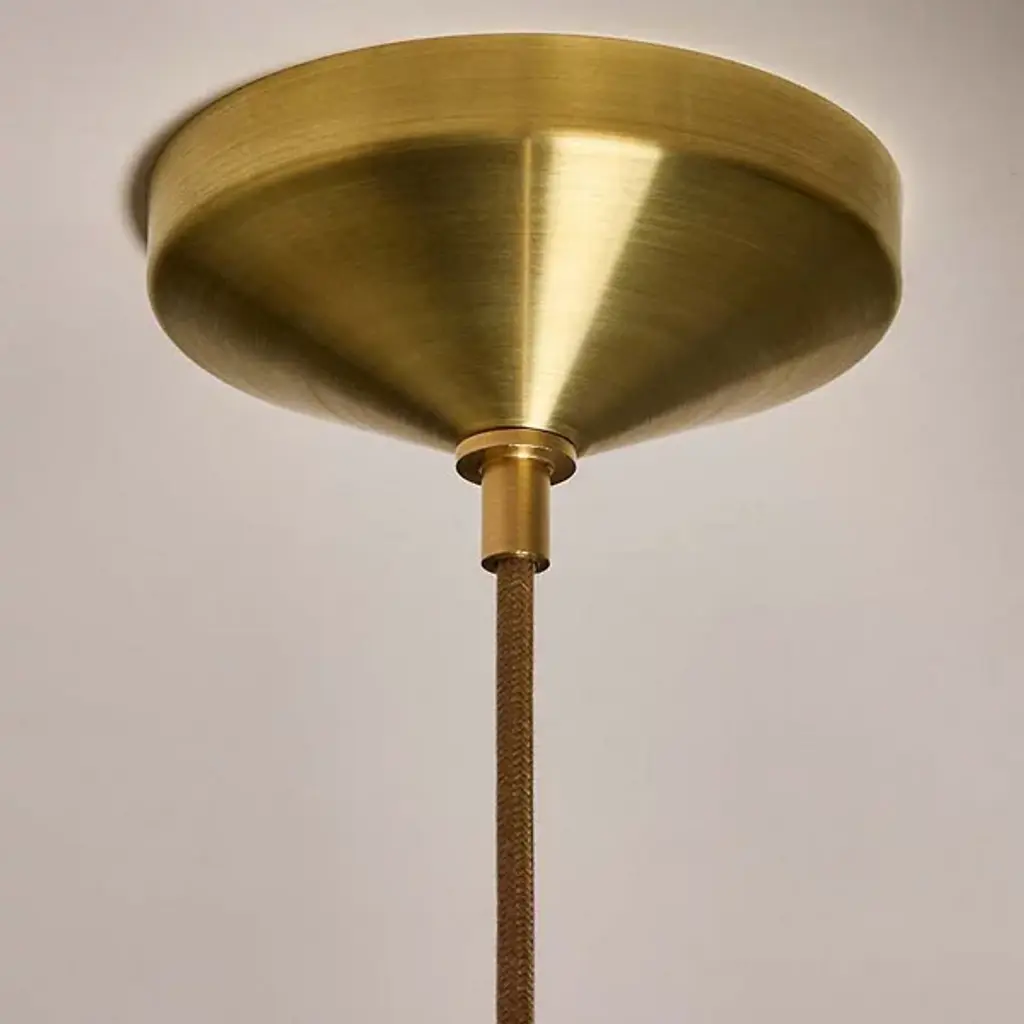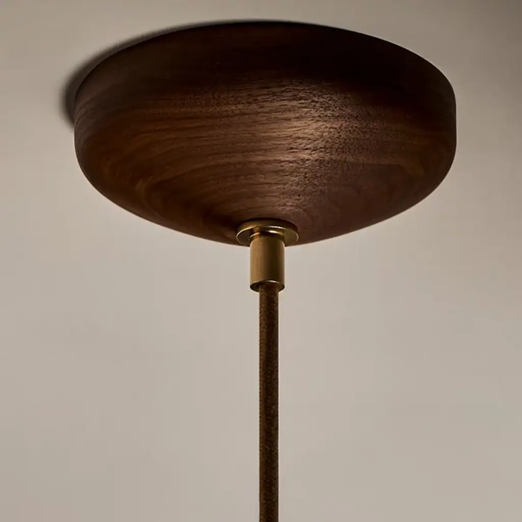 Elevate your interior spaces with the casual, California Modern elegance of the Humboldt 02 LED Pendant from Roll & Hill. Made in the USA, a central woven cord suspends this pendant and features a sophisticated, layered design. Energy-efficient LED lamping is housed in a round brass casing with a translucent glass dome. A “donut” style ring of stoneware is complemented by a flared upper housing, with the vibrant glaze of the ceramic adding rich colors to the simple, modern forms.