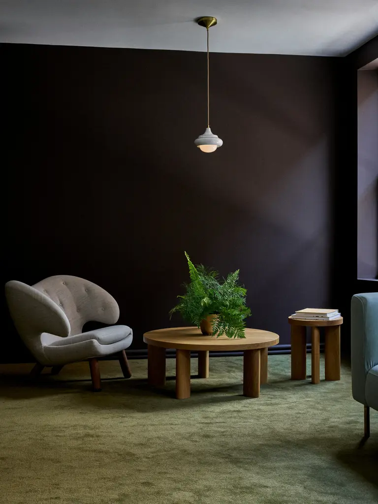 Rich colors, natural materials, modern forms - Roll & Hill's Humboldt Collection is an ode to early 20th-century California craft. Bring a touch or organic elegance to your space with the Humboldt Pendant 01 (2024), offered in two expressions: Ceramic in a curated palette of richly hued glazes or white oak with a natural oil finish. The quietly beautiful fixture is complemented by an opal glass dome and brass rim, adding both ambient illumination and sculptural interest to any space. LED bulb included. Made in the USA.