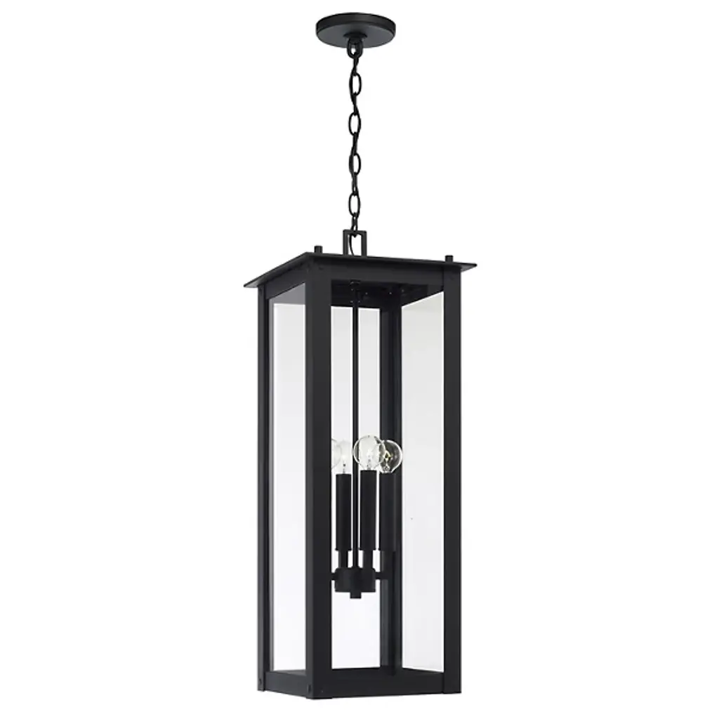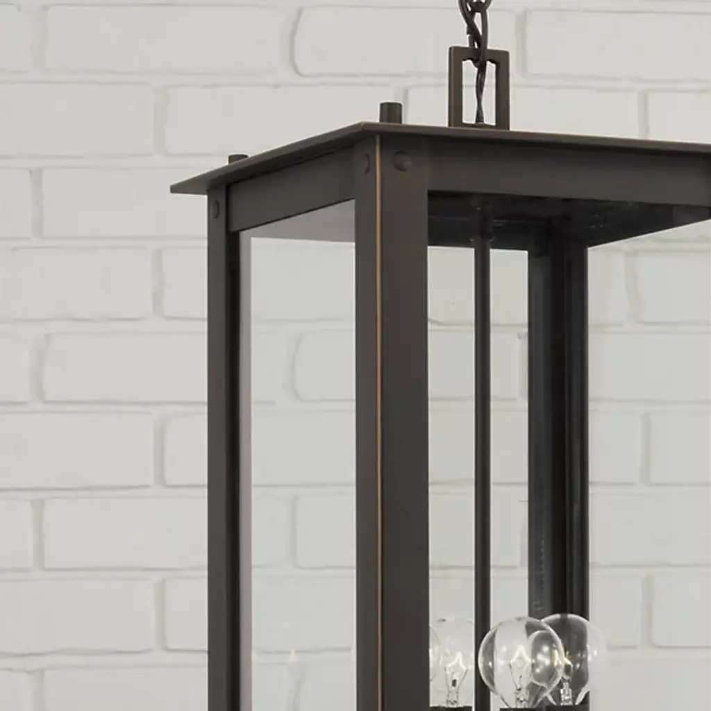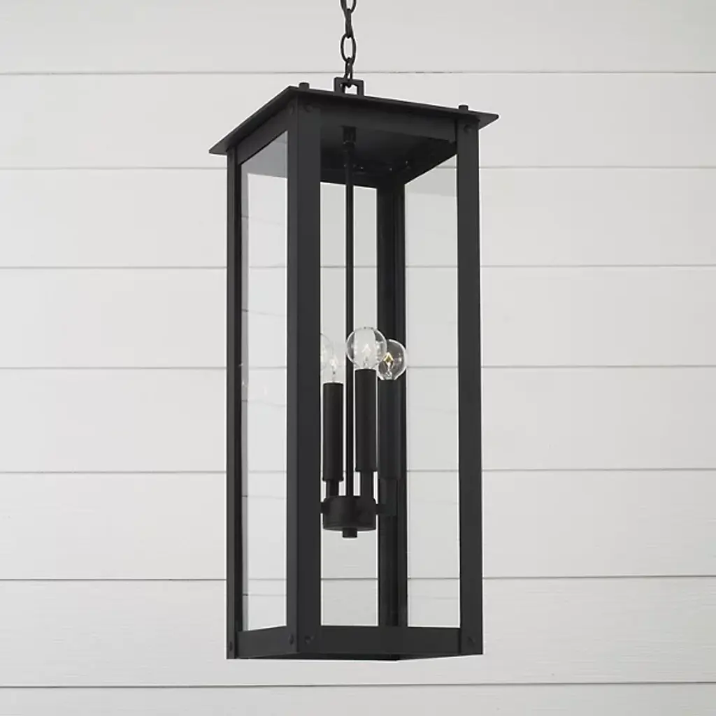 The Hunt Outdoor Pendant from Capital Lighting reinvents lantern design with its minimalist open framework. Clear glass panels provide unobstructed views of the upward-facing light sources while protecting them from outdoor elements. The structured geometry creates distinctive shadow patterns when illuminated after dark. This outdoor pendant is engineered for all-weather performance with a warranty against environmental damage. Light projects from multiple directions, effectively illuminating pathways and entryways without harsh glare.