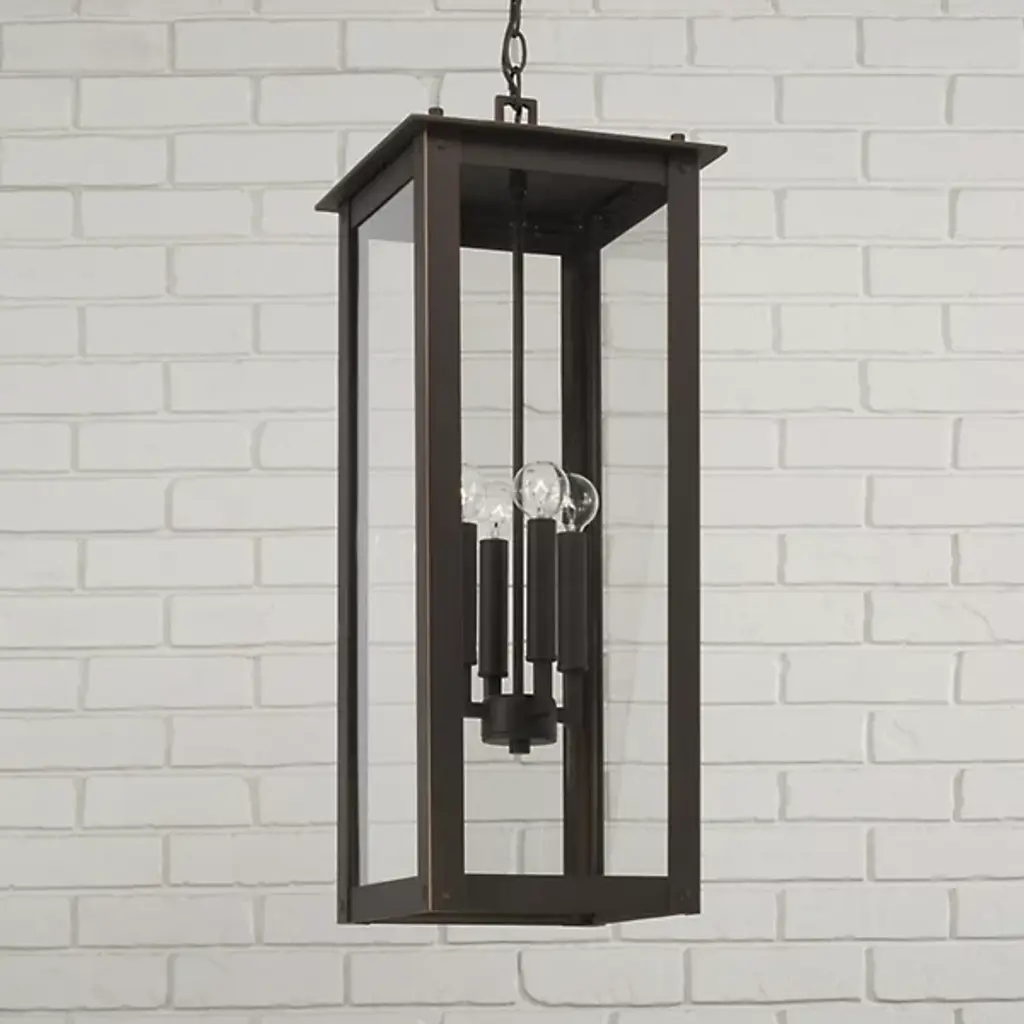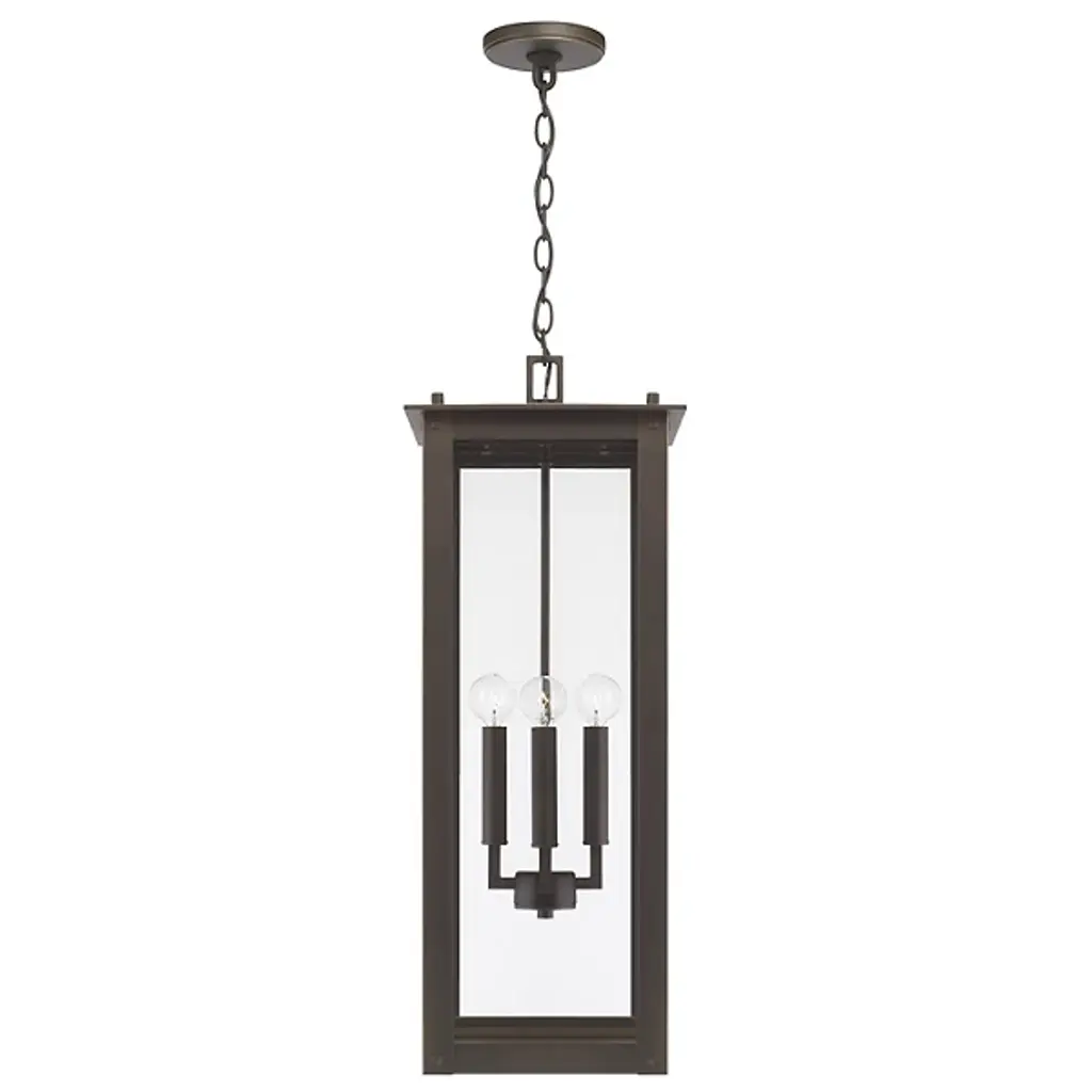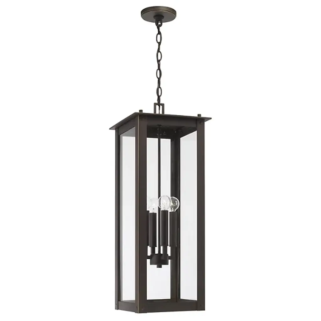 The Hunt Outdoor Pendant from Capital Lighting reinvents lantern design with its minimalist open framework. Clear glass panels provide unobstructed views of the upward-facing light sources while protecting them from outdoor elements. The structured geometry creates distinctive shadow patterns when illuminated after dark. This outdoor pendant is engineered for all-weather performance with a warranty against environmental damage. Light projects from multiple directions, effectively illuminating pathways and entryways without harsh glare.