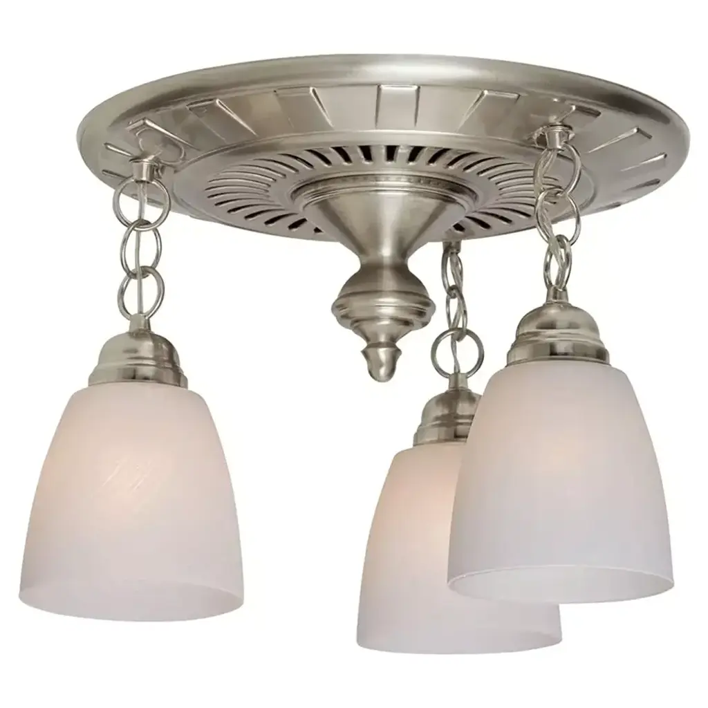 Lighting fixtures finish and brighten up a room, so add the Hunter Home Comfort Bathroom Ventilation Exhaust Fan and Light Fixture to give your room a simple and effortless finish. ETL-listed for safe use over your shower enclosure or bathtub, this light fixture features a contemporary and modern look. Featuring a brushed nickel finish with silk road white glass shade enclosures for 3 bulbs, the fan is suitable to match a wide range of home decor themes. The hidden fan reduces excess humidity to prevent the unhealthy buildup of moisture in bathrooms, operating quietly at 1.5 sones with 70 CFM of air movement. The light and exhaust fan can be wired to the same switch, or to independent switches and feature a screwless design enclosure, allowing for easy re-lamping and cleaning. All hardware is included for flush mount installation. Whether you are fully renovating or switching out your current fixtures, the Hunter Home Comfort Bathroom Ventilation Exhaust Fan and Light Fixture is sure to brighten up your home.