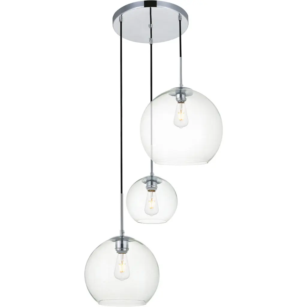 Refined style with a practical design, Huntington hanging pendant lamps bring cosmopolitan sophistication anywhere, especially to an entryway, office, bathroom, bedroom, or kitchen. The smooth iron frame features a disk-shaped canopy and comes in a chrome finish. Adjustable black cords allow you to modify the hanging height from 18 to 87 inches. Three clear spherical glass shades of different sizes are suspended at varying heights and remain open at the center to allow for effortless replacement of the filament-style bulbs (not included). Living in the big city has never been this easy.
