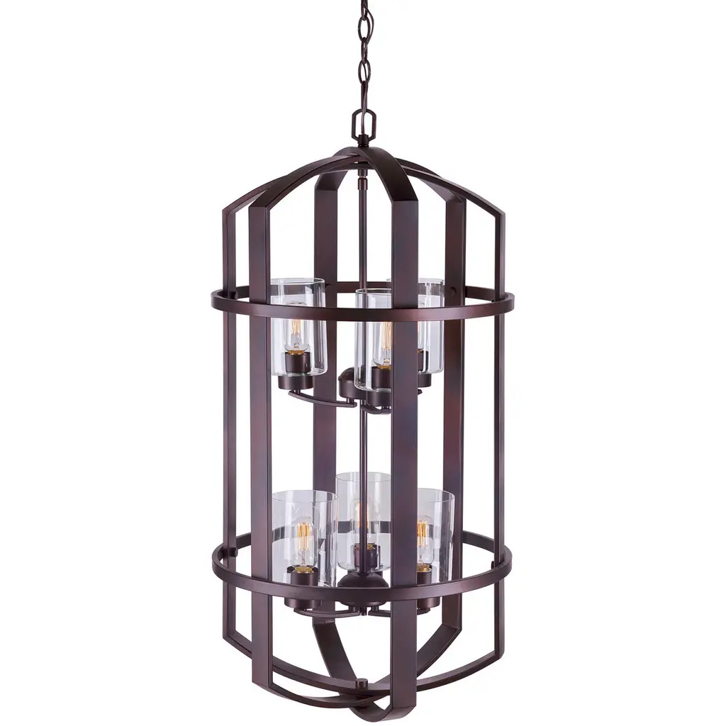 6-Light Antique Bronze Foyer Pendant with Clear Glass