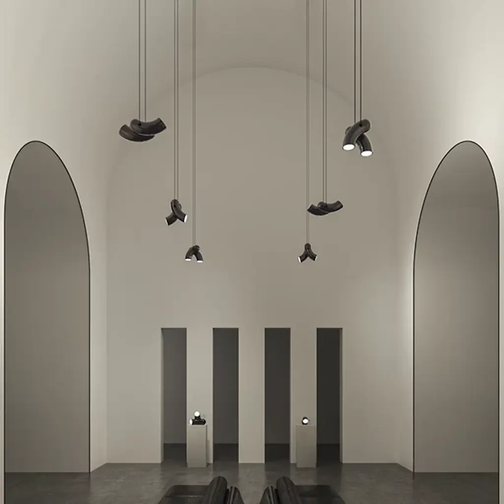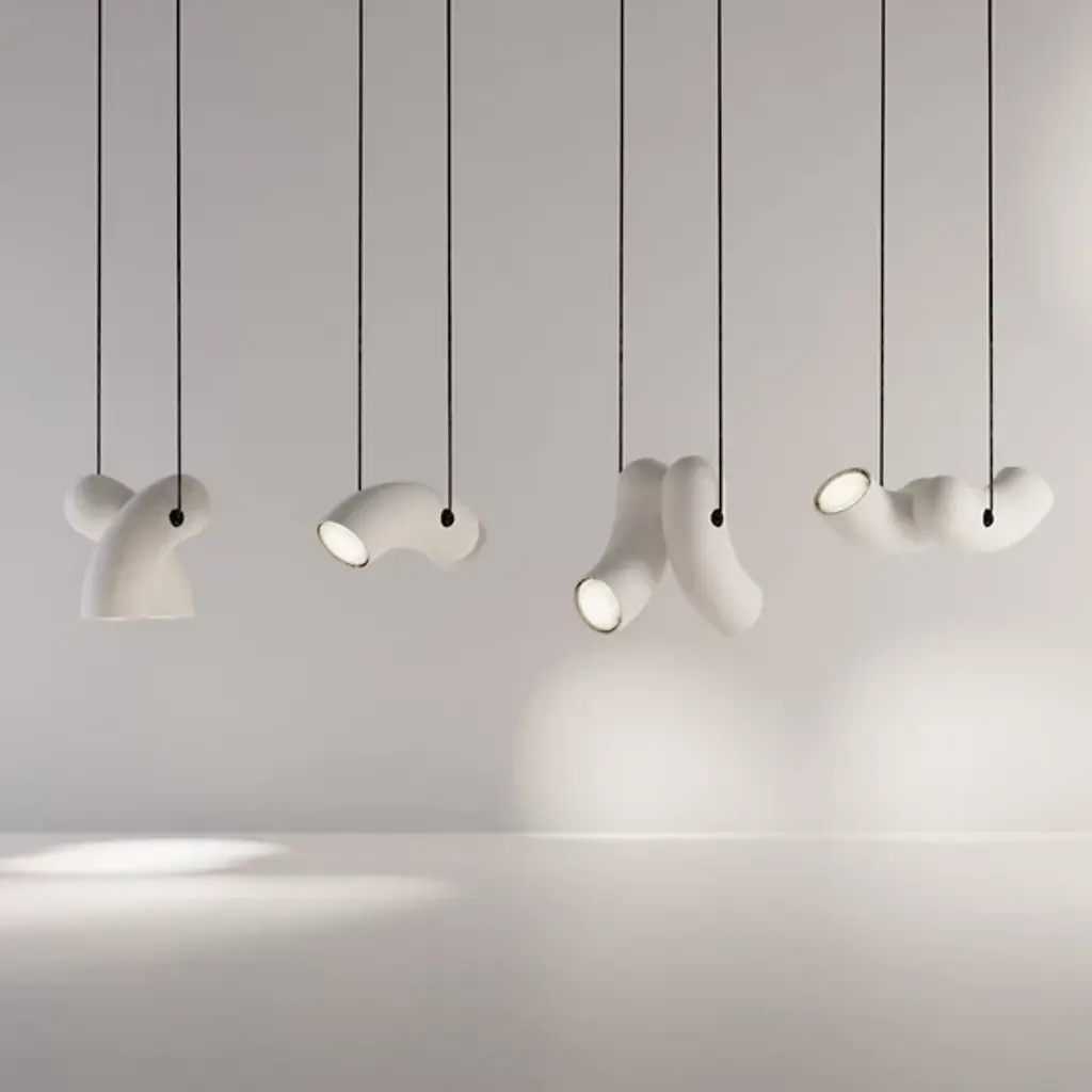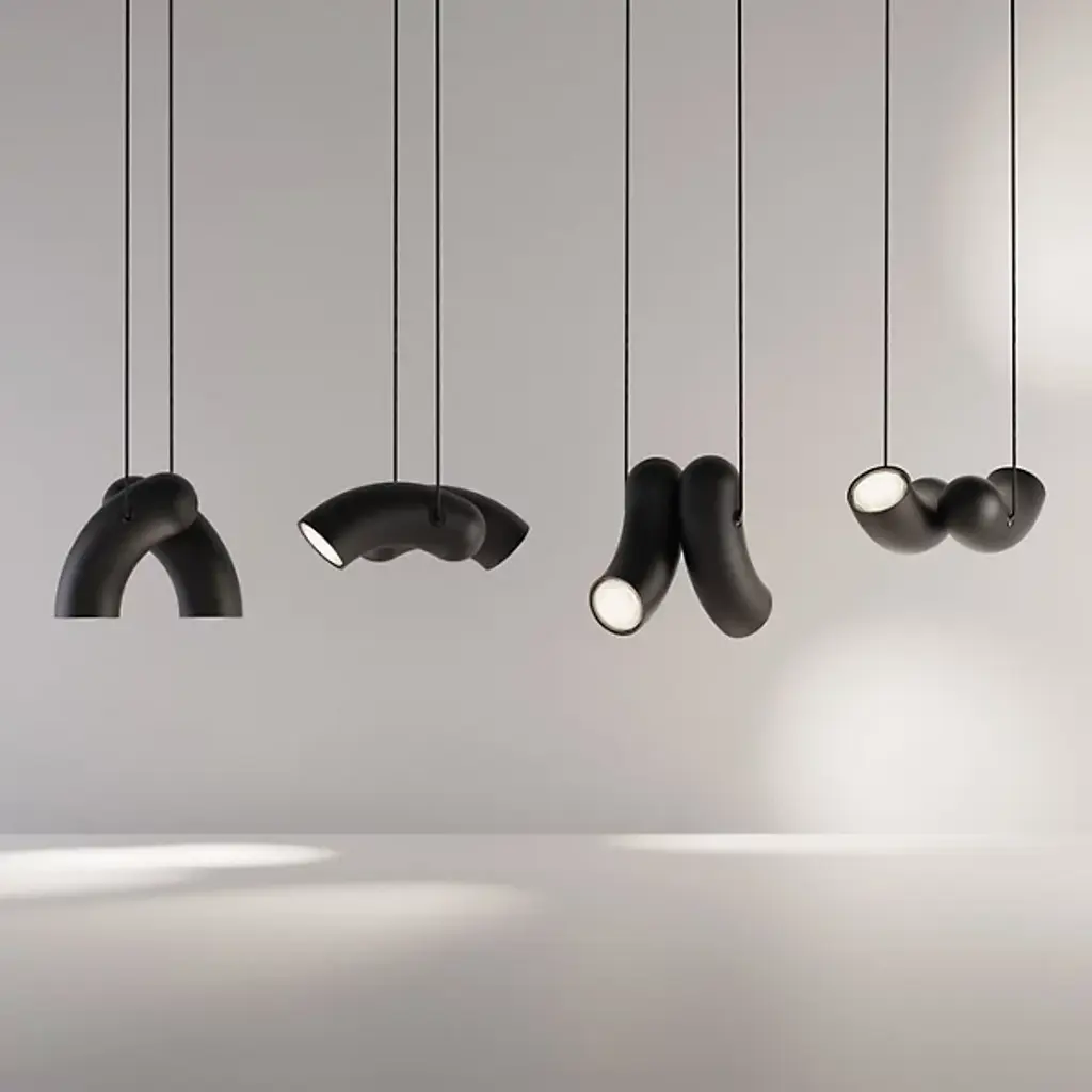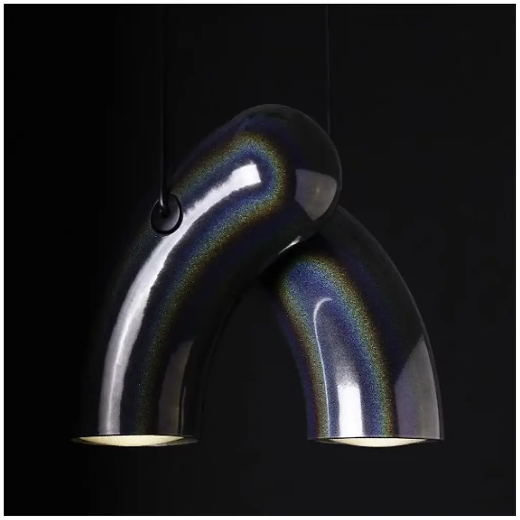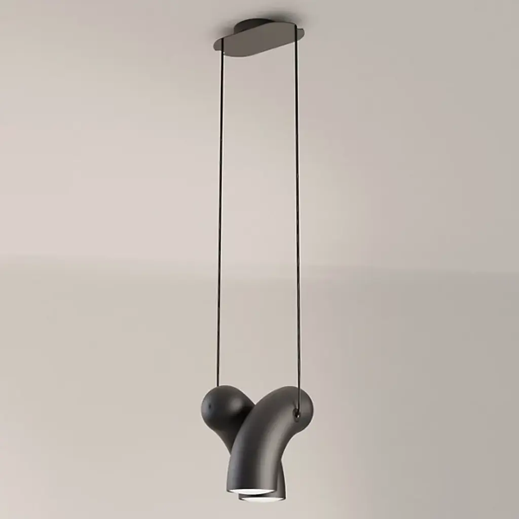 Opposites attract in the aptly named and artfully composed Hyphen LED Pendant from d'Armes. Designer Darmes brings a poetic approach to design that achieves sculptural pieces with contrasting elements. This piece appears to defy gravity as a pair of fine cords drops down as a suspension. They hold intriguing organic forms that delight in their rounded qualities. These unified shapes evoke the linear mark of the hyphen. They rotate on their axis for impressive new silhouettes and light. This LED light diffuses through a lens to create a 2-part dynamic glow with soft qualities.