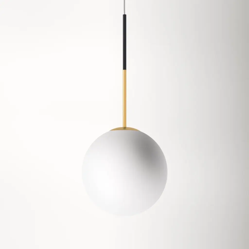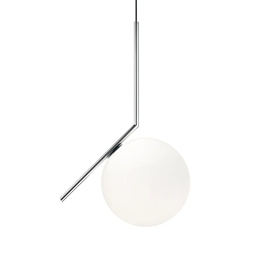 Featuring sleek lines and a contrasting shade, the IC Lights Pendant from FLOS brings contemporary style to your living or dining spaces. Originally designed in 2014 by Michael Anastassiades, this pendant light features a metal frame with an blown opal glass diffuser for warm, glowing light. Suspend across a kitchen island to bring ample light to mealtime or flank either side of a master bed to bring a unique lighting source to your master bedroom. Highlights