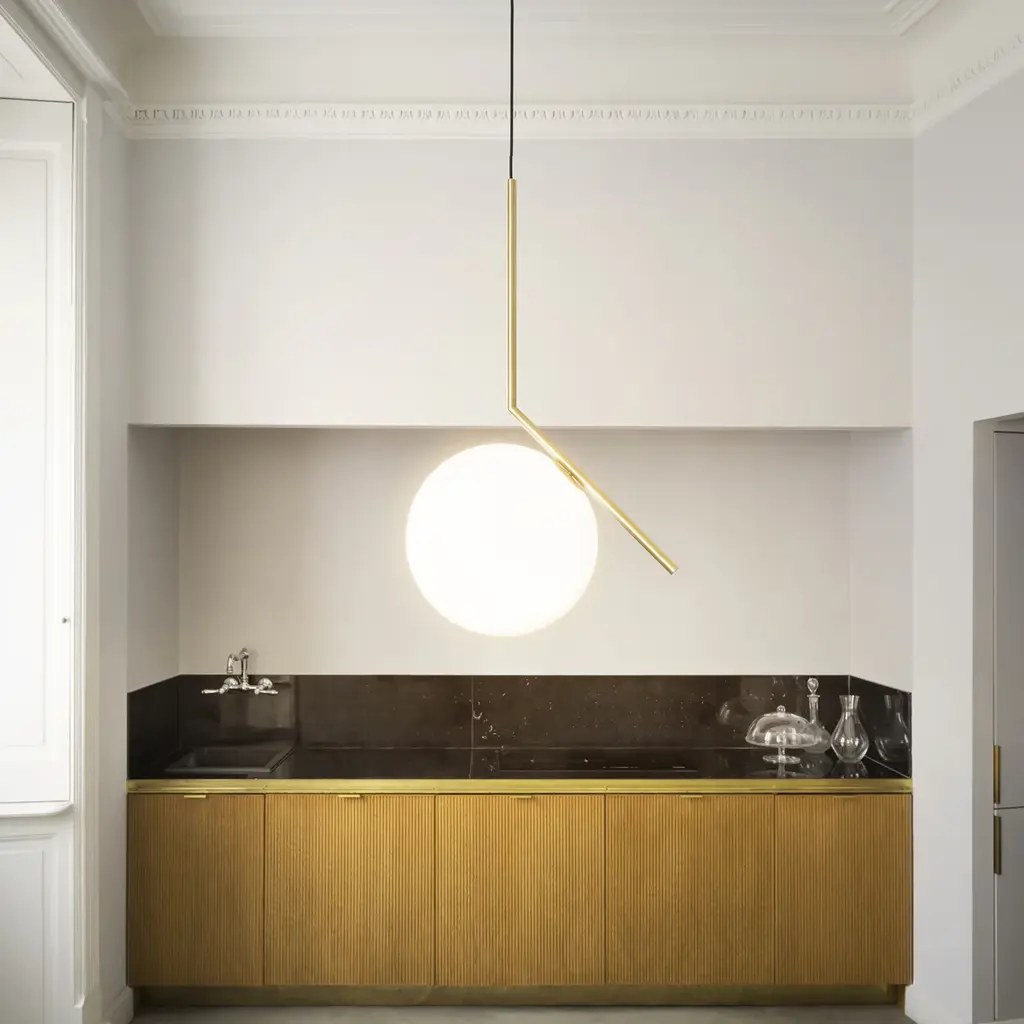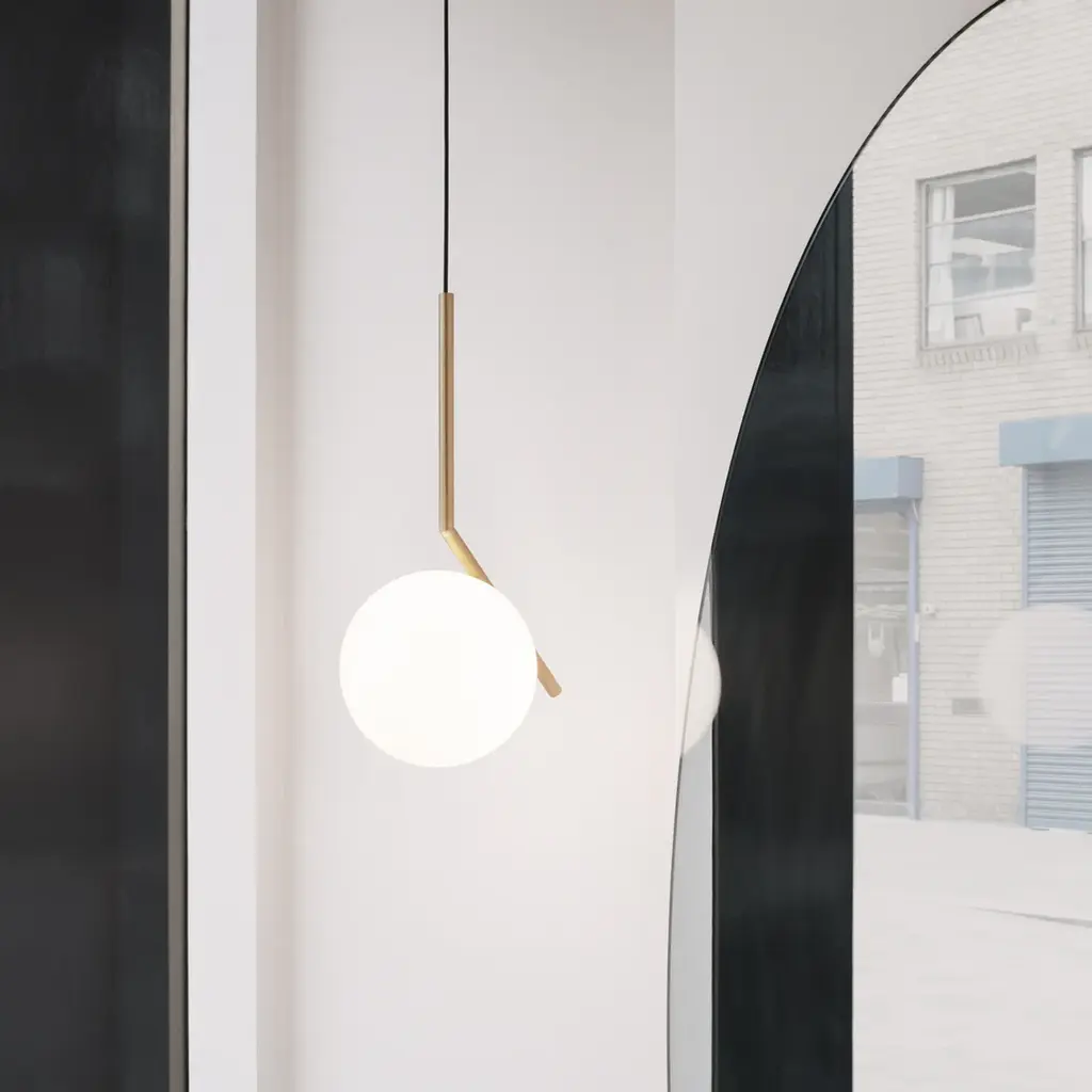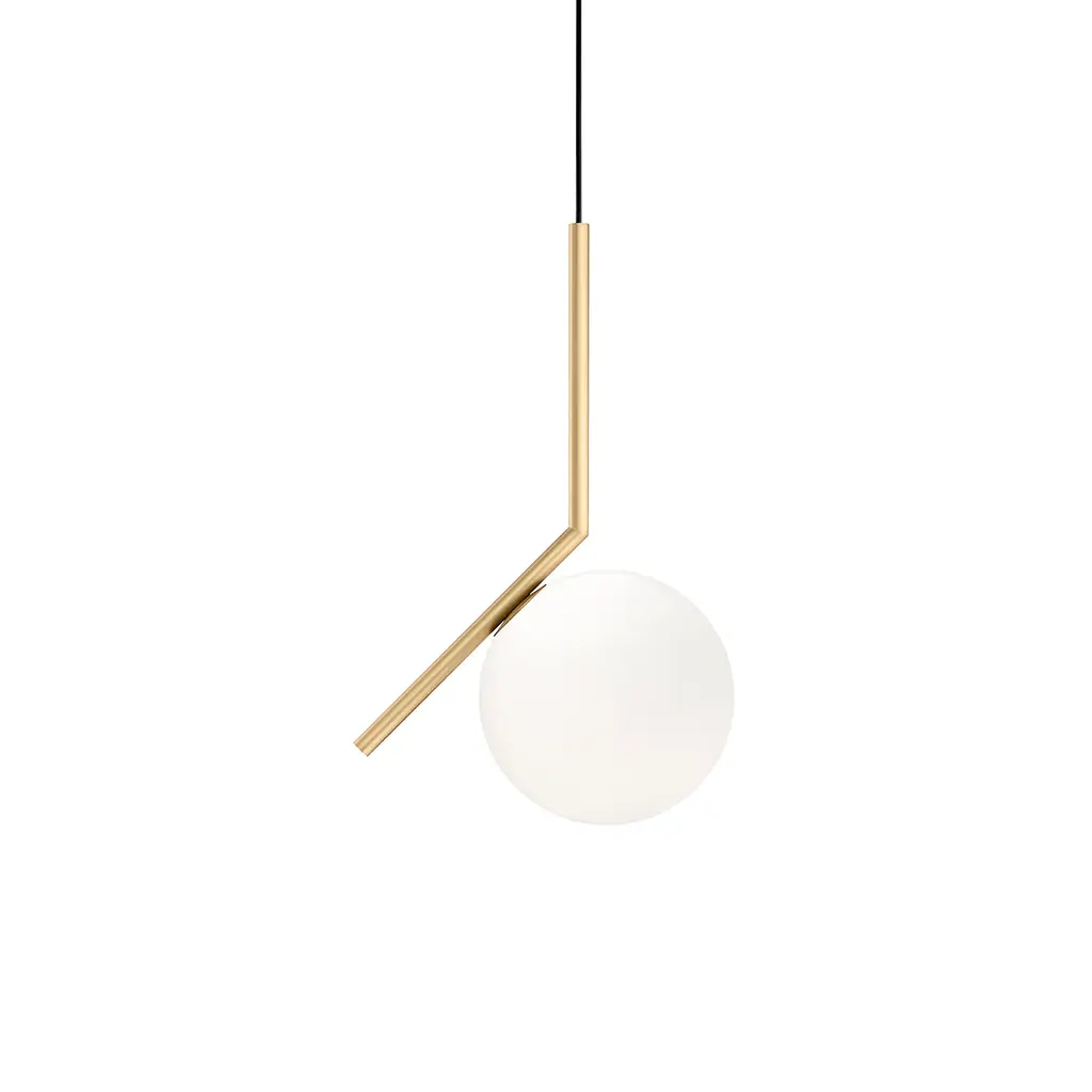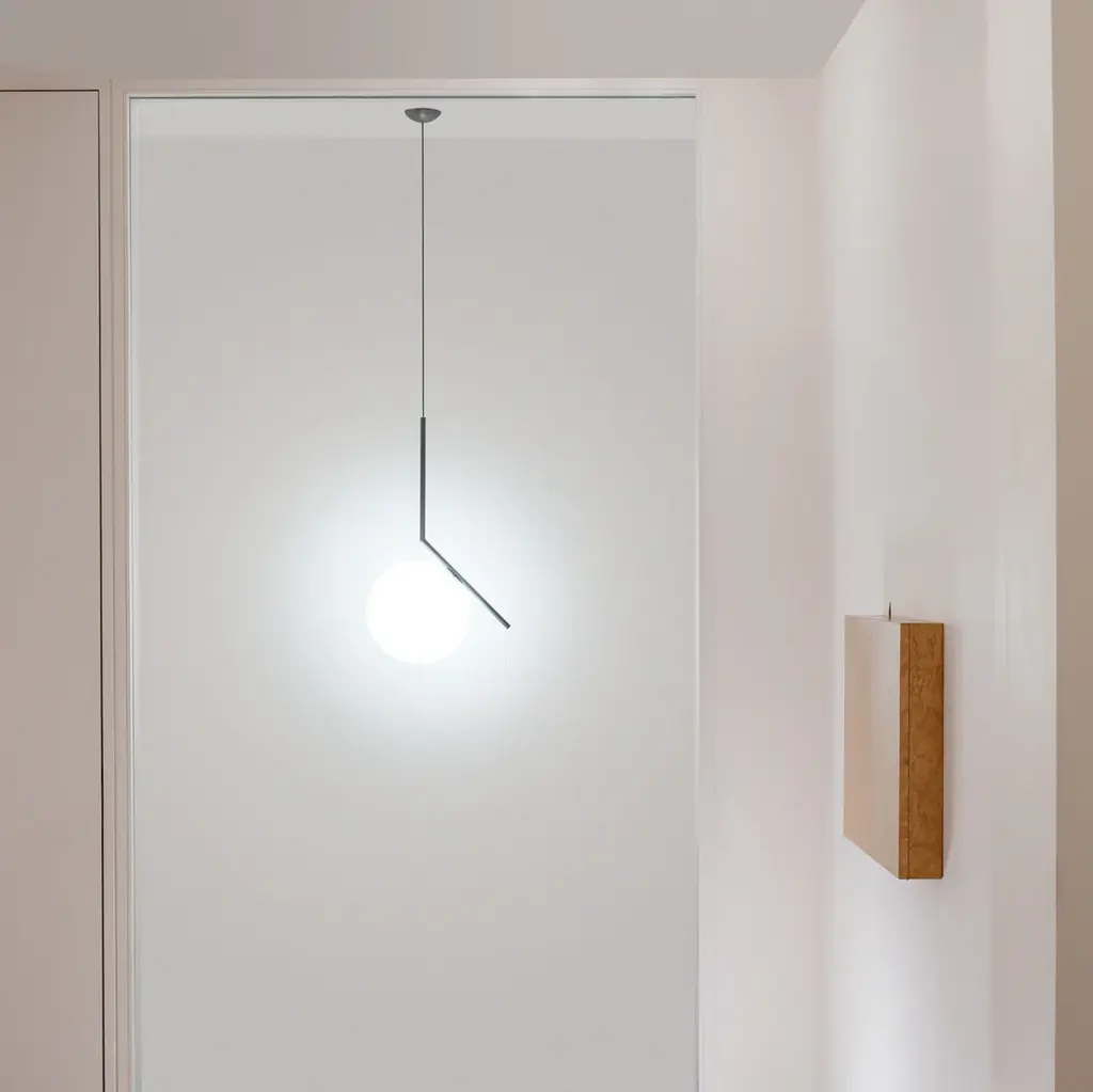 Featuring sleek lines and a contrasting shade, the IC Lights Pendant from FLOS brings contemporary style to your living or dining spaces. Originally designed in 2014 by Michael Anastassiades, this pendant light features a metal frame with an blown opal glass diffuser for warm, glowing light. Suspend across a kitchen island to bring ample light to mealtime or flank either side of a master bed to bring a unique lighting source to your master bedroom. Highlights