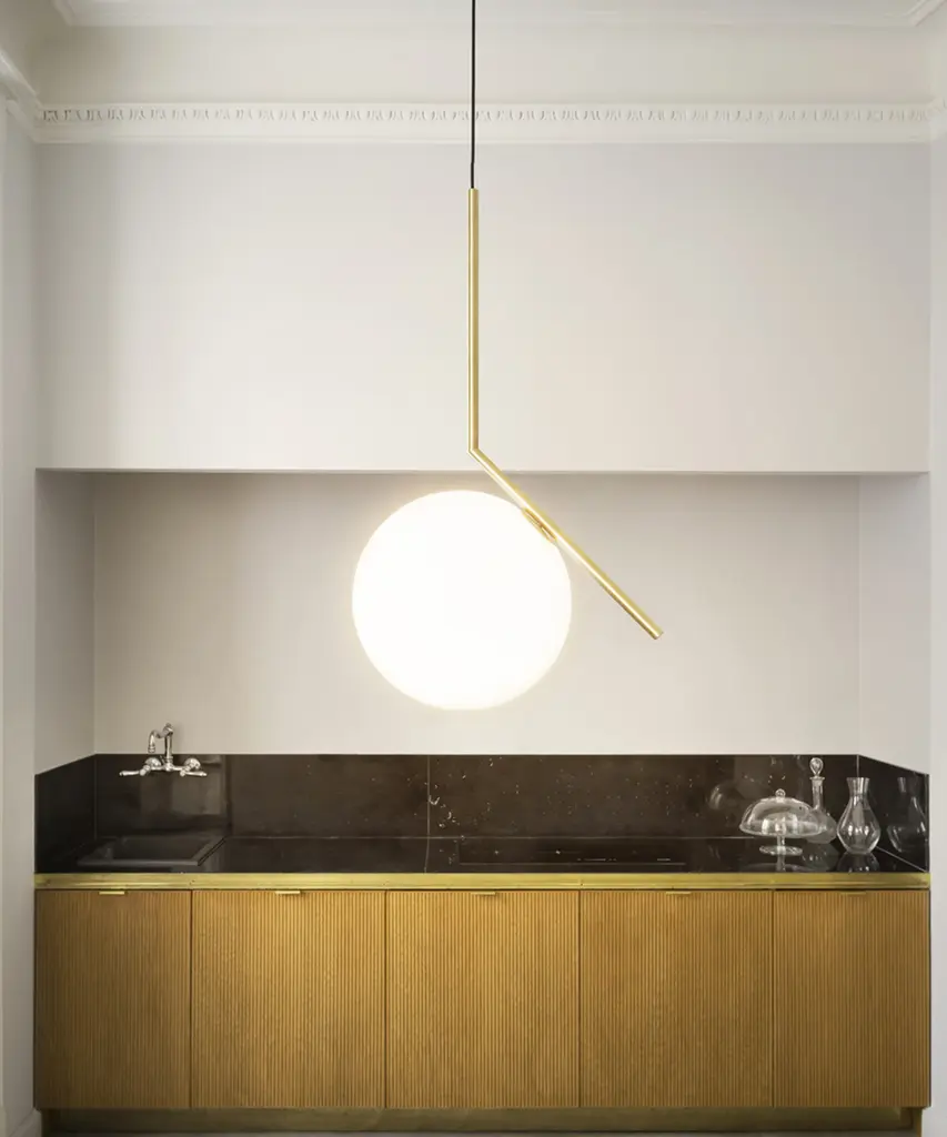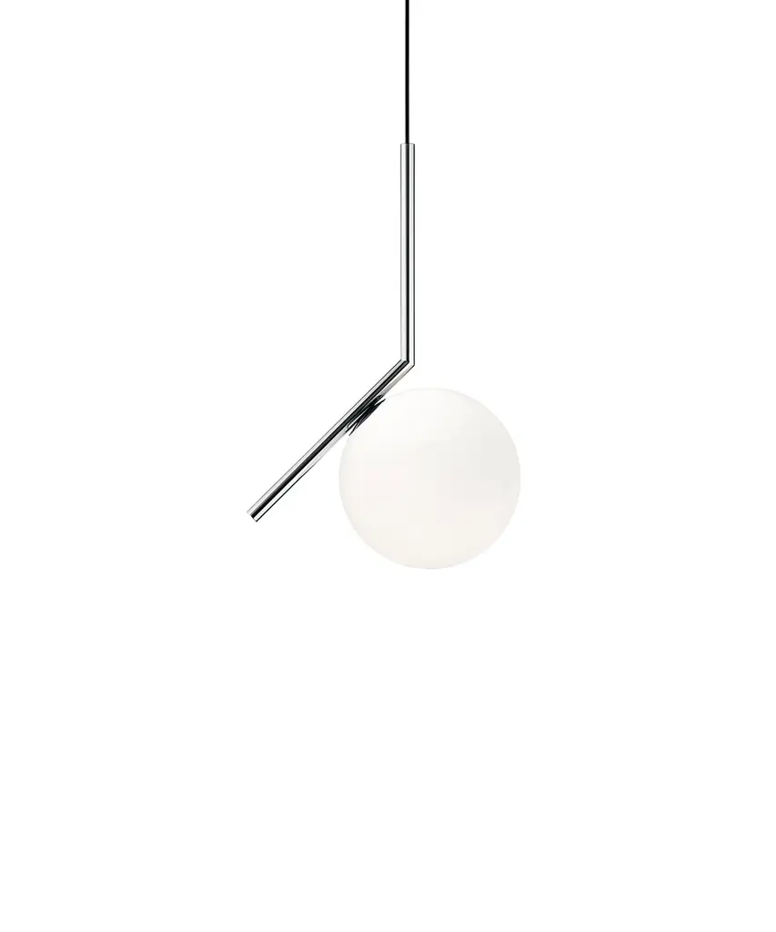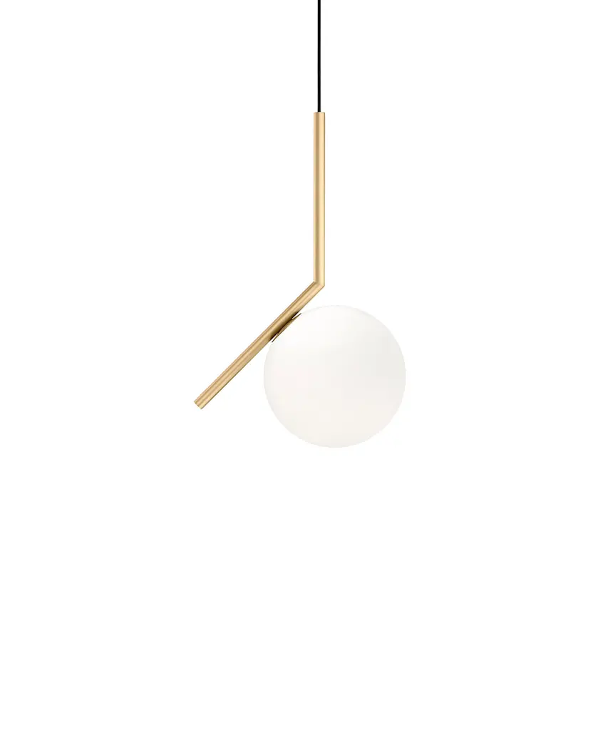 Like the other pieces in the IC Light Series, the IC Lights S balances designer Michael Anastassiades' love of industrial simplicity with intricate symbolism. Providing diffused light through an opal-blown glass diffuser, this pendant light is framed in brass-finished steel. The inspiration behind the design: Poise is powerful: That's the message Michael Anastassiades offers with his IC Light Series. From the skillful balance of the sphere and baton that invokes thoughts of a dexterous juggler's act to the lamp's name-IC, a reference to the identity code used to evaluate immigrants entering the UK-the designer makes a commanding statement. This authentic design is produced in Italy exclusively by Flos.