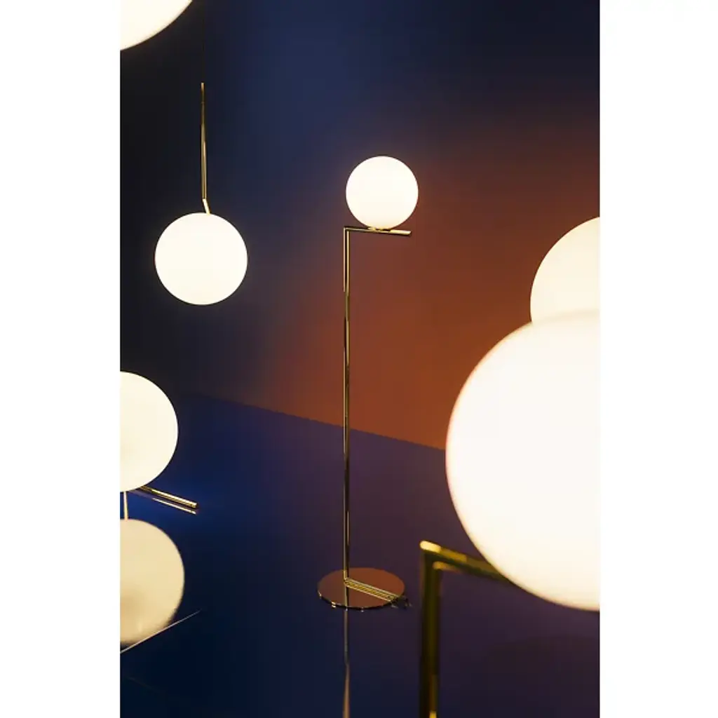 The IC S Pendant Light from FLOS is a case study in balance. After watching a video clip of a contact juggler, designer Michael Anastassiades was inspired by the skill it took to spin and move the set of spheres around the juggler's body. His starting point was to capture the moment where the spheres seemed to freeze in place on the juggler's arms and edge of his fingers, thus was born the IC collection. Features a steel frame and blown glass opal diffuser.