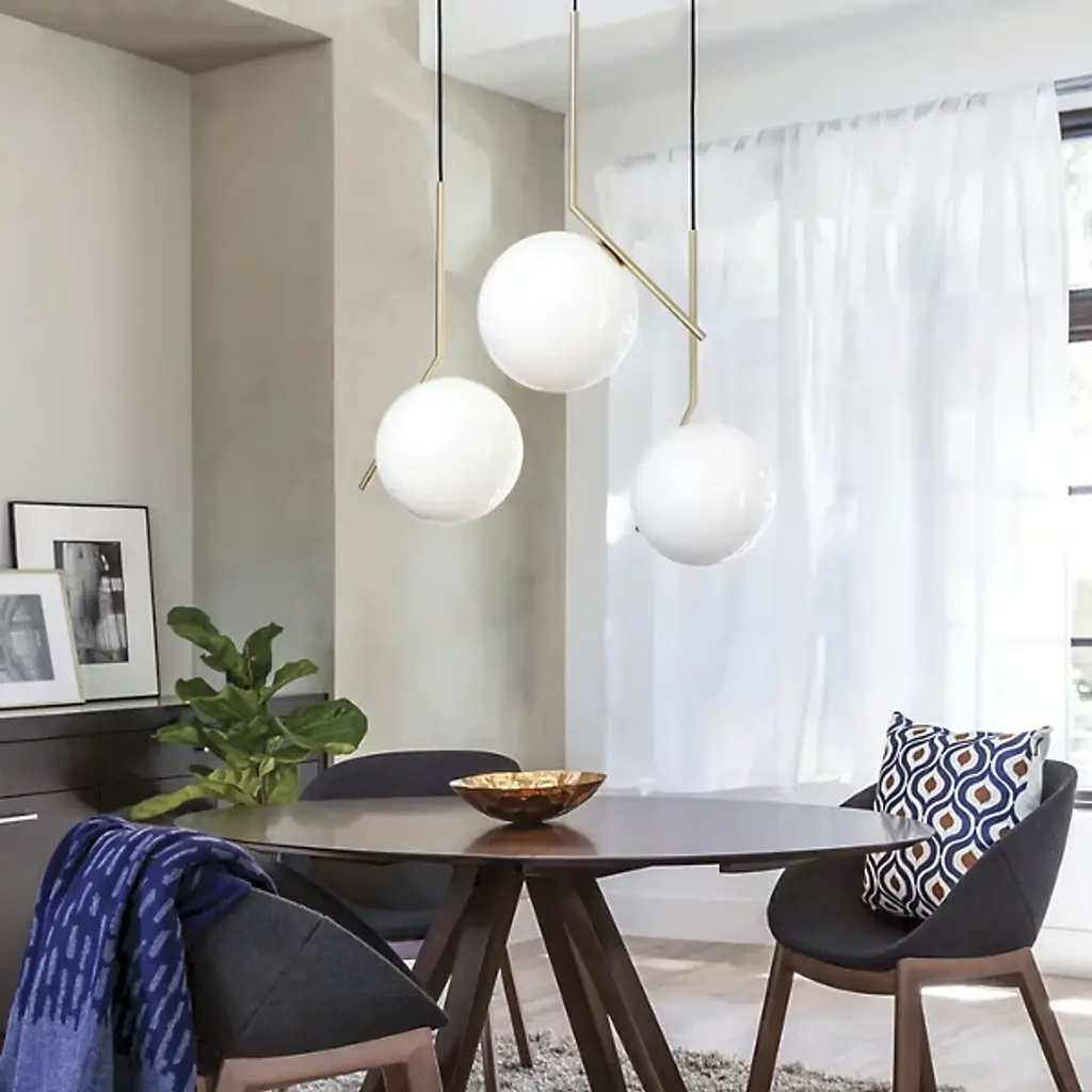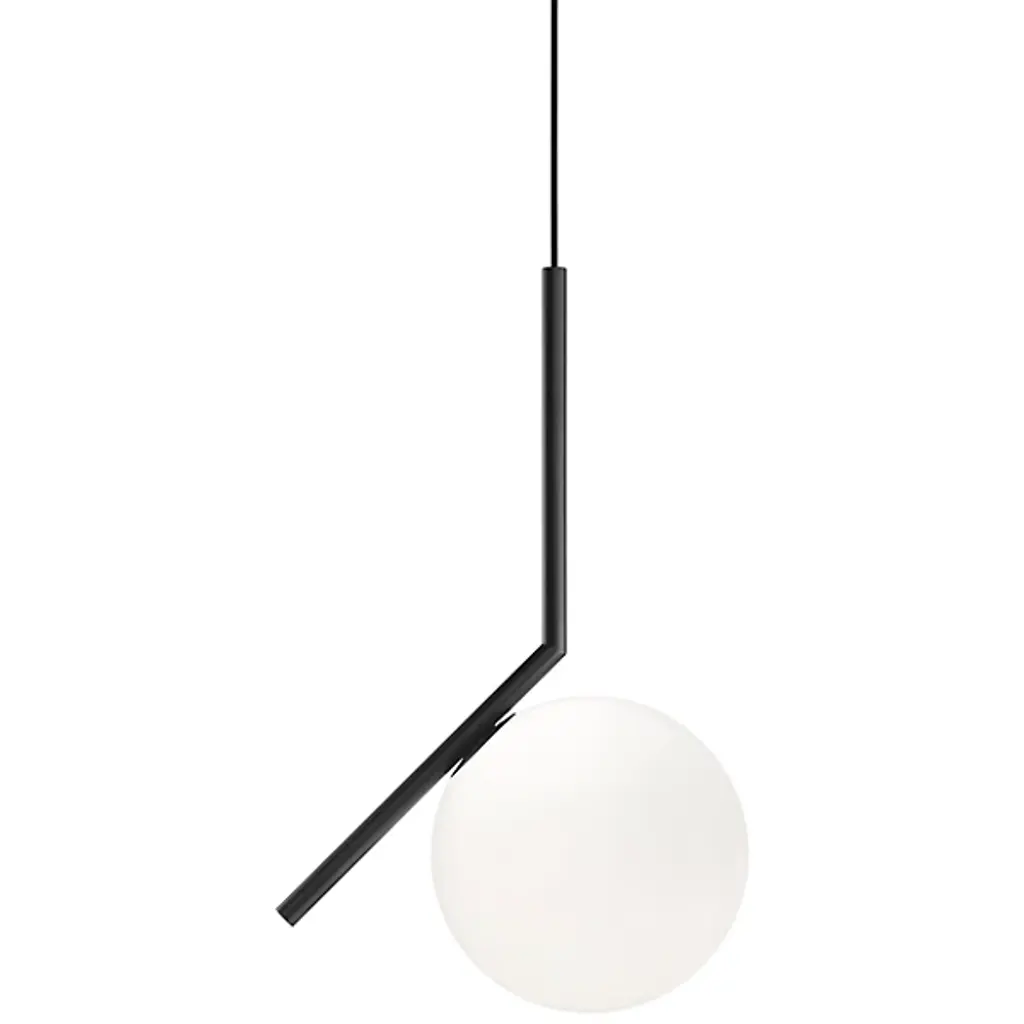 The IC S Pendant Light from FLOS is a case study in balance. After watching a video clip of a contact juggler, designer Michael Anastassiades was inspired by the skill it took to spin and move the set of spheres around the juggler's body. His starting point was to capture the moment where the spheres seemed to freeze in place on the juggler's arms and edge of his fingers, thus was born the IC collection. Features a steel frame and blown glass opal diffuser.