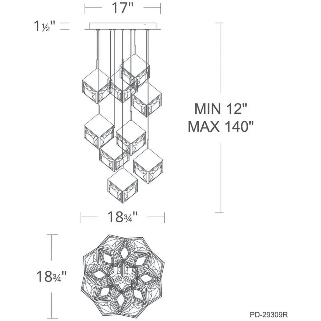 Ice Cube Led 18.75 Inch Black Multi-Light Pendant Ceiling Light, Dweled