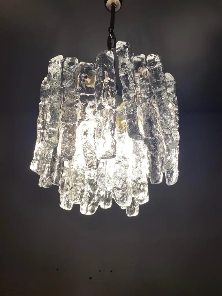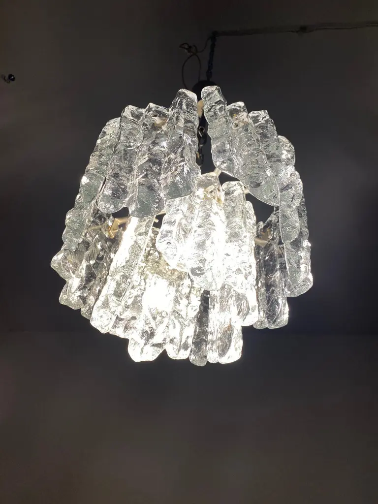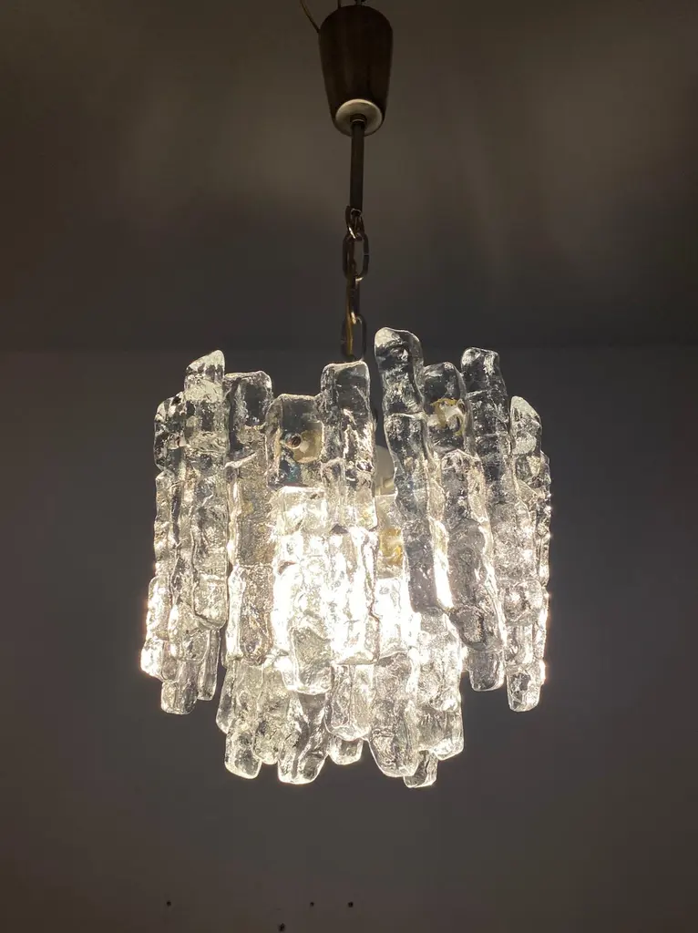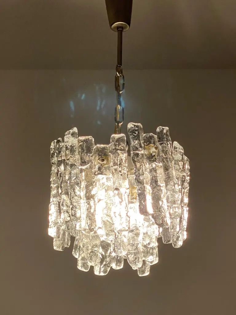 Brass frame nickel-plated with 12 ice glass panels, fitted with one E27 socket, made by J.T. Kalmar in the 1960s.