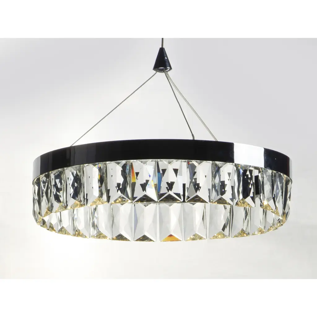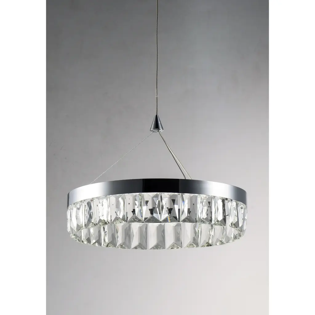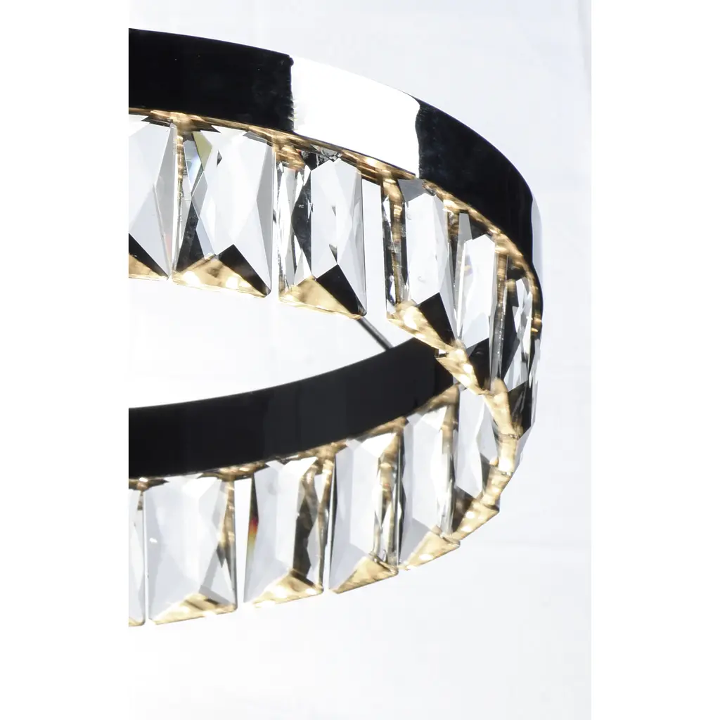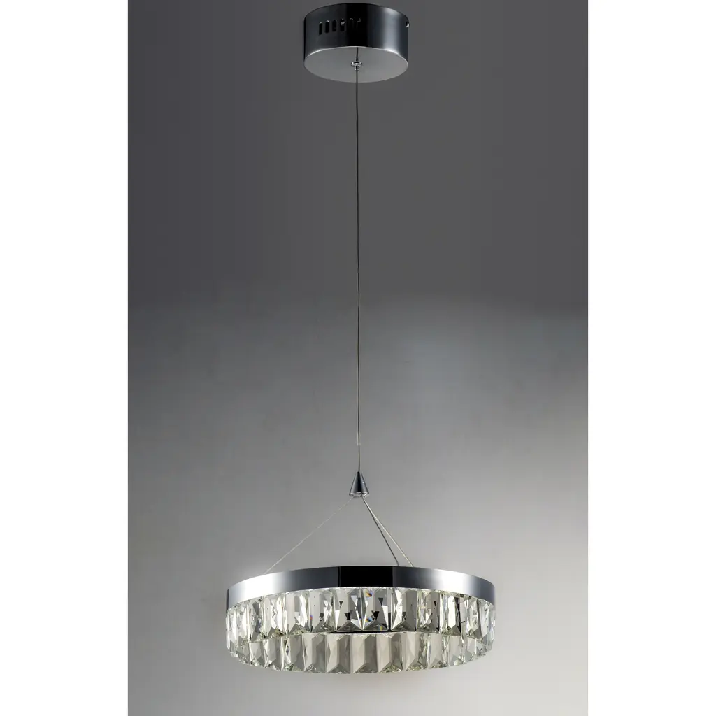 Rectangular Beveled Crystals are suspended from a channel of Polished Chrome. The crystal sparkles and shimmers when illuminated by the LED source encased in the channel. This contemporary will add elegance to a wide variety of room decors.