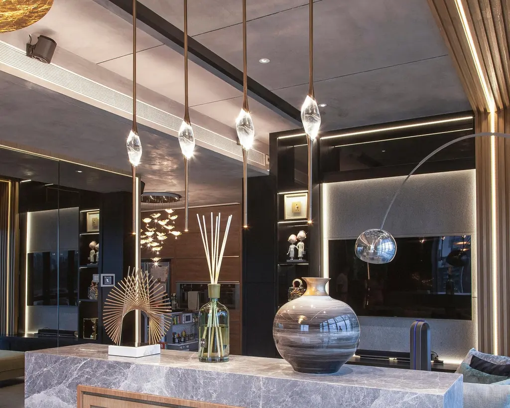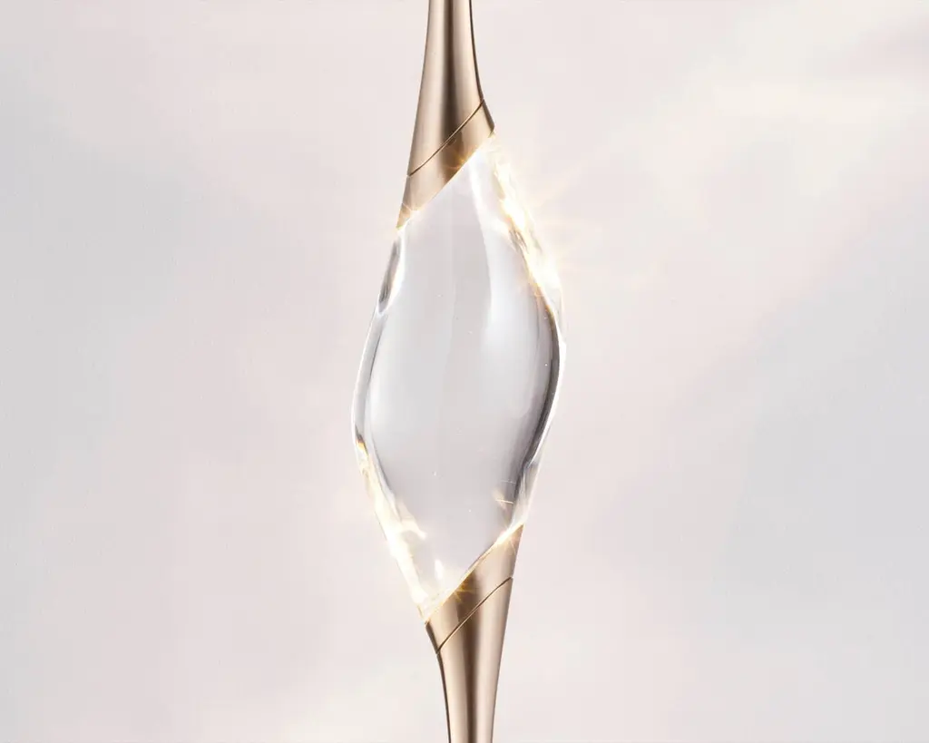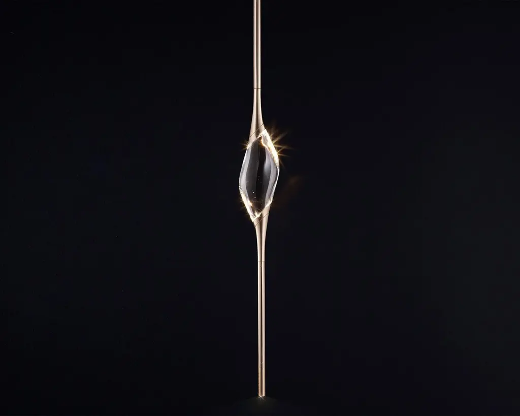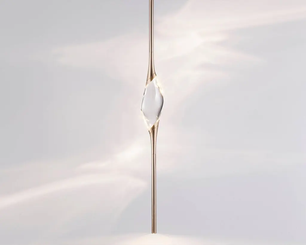 Il Pezzo 12 is a female figure suspended in the air, carrying in her womb the light. It’s nimble, refined, addictive.The solid clearest crystal, brilliantly illuminated by two LEDs, diffuses ambient light and casts mesmerizing patterns throughout the room. It’s suspended between brass stems and brass casting rings, available in different finishes. The fixture is adorned with an additional LED at the end of each stem to provide direct lighting. Experiencing the exquisite craftsmanship of this piece, combined with highly advanced LED technology, is truly fascinating.Each suspension is numbered and shows the “Missing Piece” (“Pezzo Mancante” in Italian): a small brass cylinder containing a unique serial number, guarantees its authenticity and individuality.Custom sizes and finishes are also available to suit every preference.All our masterpieces are meticulously crafted in our Atelier located in Florence, Italy, from a small team of people driven by a shared passion for quality and beauty. We constantly strive to create unparalleled works of art, where each piece is a testament to our commitment to craftsmanship and innovation.Structure: brassFinish: satin brassDiffusers: solid crystalLight source: 2.700K LED, CRI>90, dimmable.Size: ø10 cm x H 120 cm - ø3.9" x H 47.2" (custom height on request)ETL certified UL and CSA standards compliant.