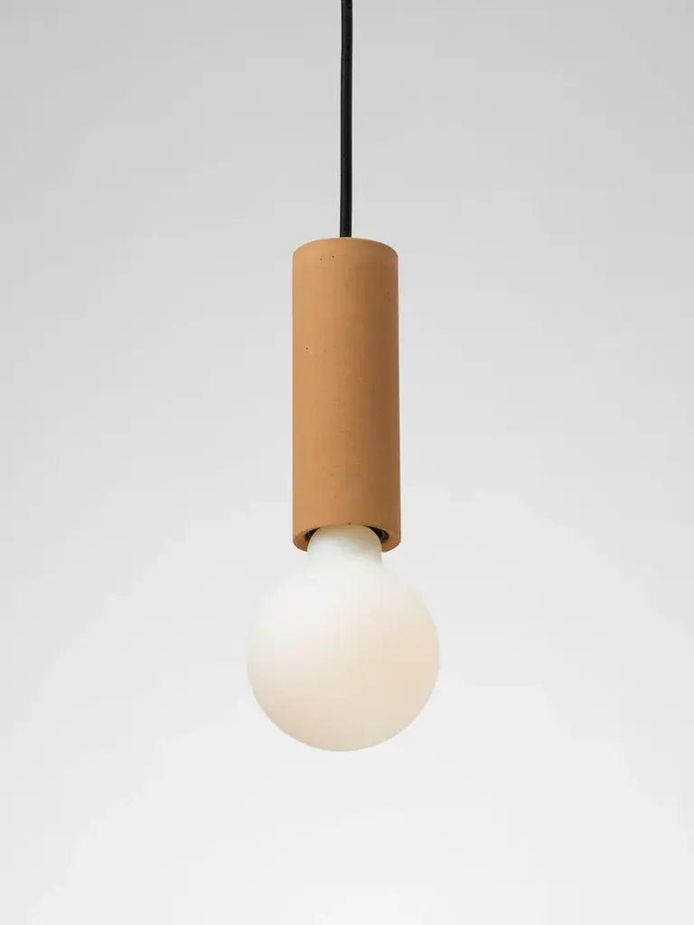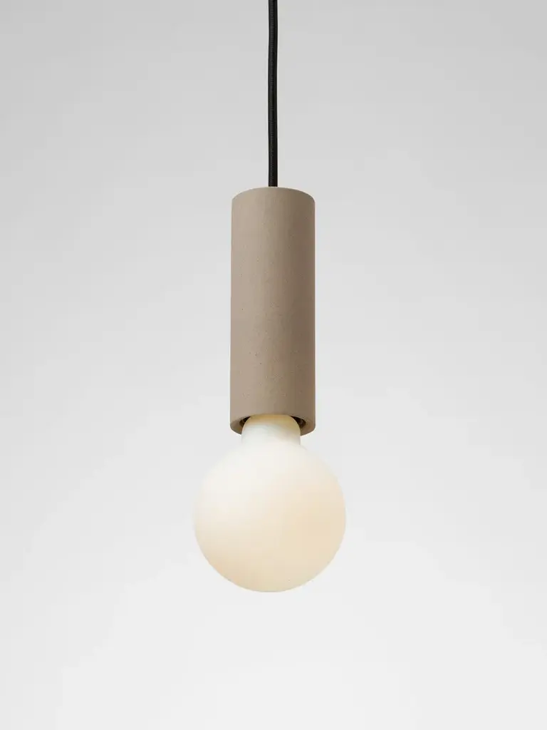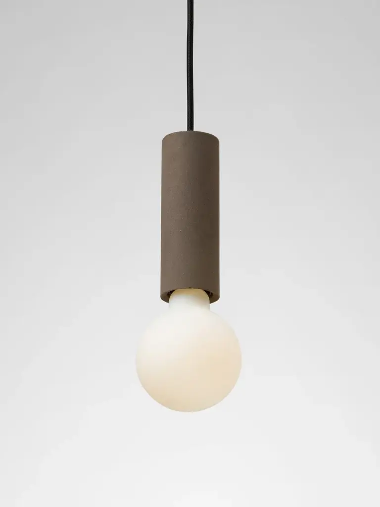 Ila revisits the most evocative of industrial lamps, transforming it into a refined hanging light, where its minimalist aesthetics meet the handcrafted character of colored concrete. Its extremely simple shape, its width reduced to a minimum and its opaque surface make it suitable for illuminating spaces where essentiality dominates. The material character of the concrete it is made of and its color make it appropriate also for contemporary environments with a strong personality. Ila can be used individually for spot lighting or in groups to illuminate large spaces. Like all Plato Design products Ila is designed and handcrafted in Italy with high quality materials and components to last over time. MATERIAL: concrete DIMENSIONS: Ø 5,5 x 15 cm (Ø 2'' x 6'') WEIGHT: 0,6 kg (2.2 lb) DIMMABLE: yes depending on bulb BULB (not included): E27 max 30W 90/250 V - 50/60 Hz (E26 for US and Canada available) CABLE LENGTH: 150 cm (59'') adjustable WIRING: hardwired USE: for indoor use only Light bulb not included. The bulb used in the picture is E27 6W LED porcelain G95 2700K 540lm. The product might vary slightly from the picture due to the nature of being 100% handmade.