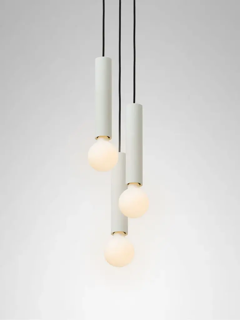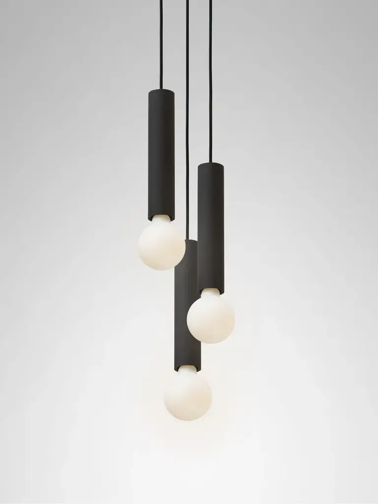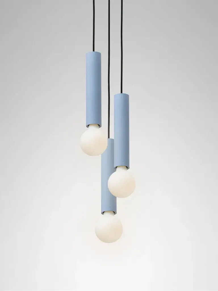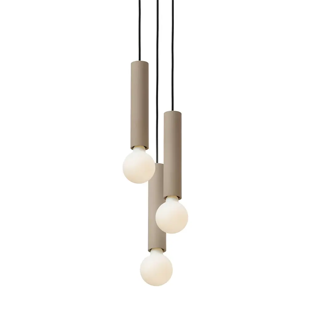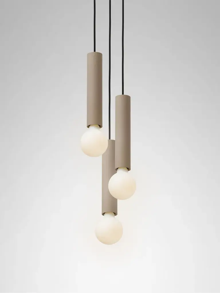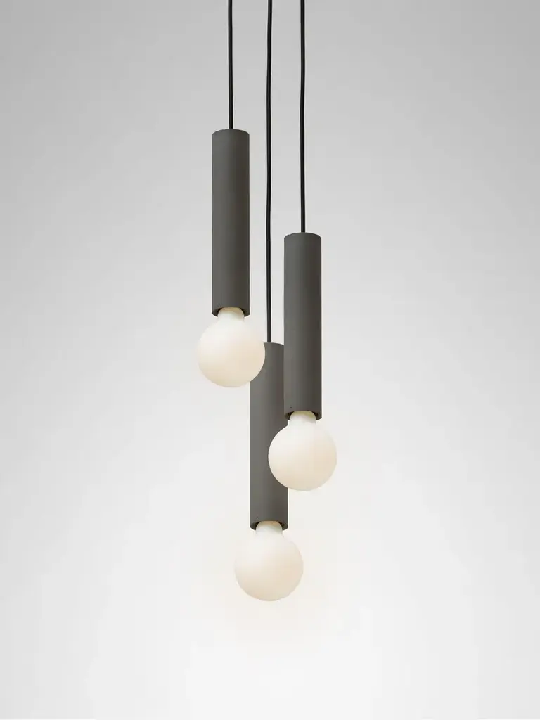 Ila Maxi Trio transforms Ila Maxi, with its peculiar aesthetic, industrial-minimalist and decorative at the same time, into a refined group of hanging lights where the handcrafted character is the distinctive feature.Its extremely simple shape, its width reduced to a minimum and its opaque surface make it suitable for illuminating spaces where essentiality dominates. The material character of the concrete it is made of and its color make it appropriate also for contemporary environments with a strong personality.Ila Maxi Trio can be used individually for spot lighting or in groups to illuminate large spaces.Like all Plato Design products Ila Maxi Trio is designed and handcrafted in Italy with high quality materials and components to last over time.MATERIAL: concreteDIMMABLE: yes depending on bulbsBULBS (not included): 3 x E27 max 30W 90/250 V - 50/60 Hz (E26 for US and Canada available)CABLE LENGTH: 150 cm (59'') adjustableWIRING: hardwiredUSE: for indoor use onlyLight bulbs not included. The bulbs used in the picture are E27 6W LED porcelain G95 2700K 540lm.The product might vary slightly from the picture due to the nature of being 100% handmade.