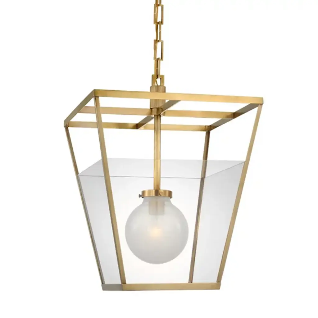 The Illume Pendant from Visual Comfort Signature offers the allure of simplicity to any space it adorns. Designed by Ray Booth, this fixture reframes traditional lantern forms, highlighting essential structures with a box frame suspended on a rectangular chain and adorned with a frosted globe. The pendant brings a charming touch to entryways, hallways, or even when suspended over a table. They can be used individually or in multiples to create a dramatic and captivating ambiance.