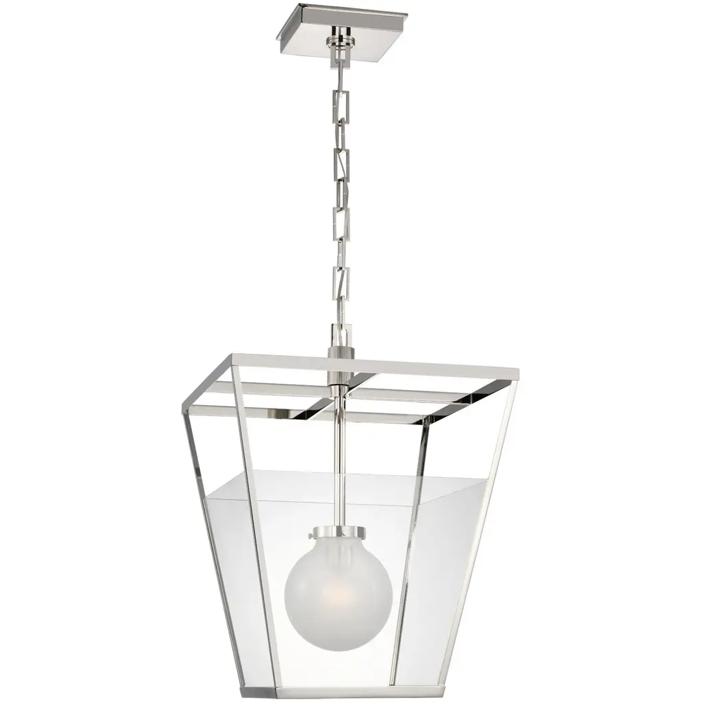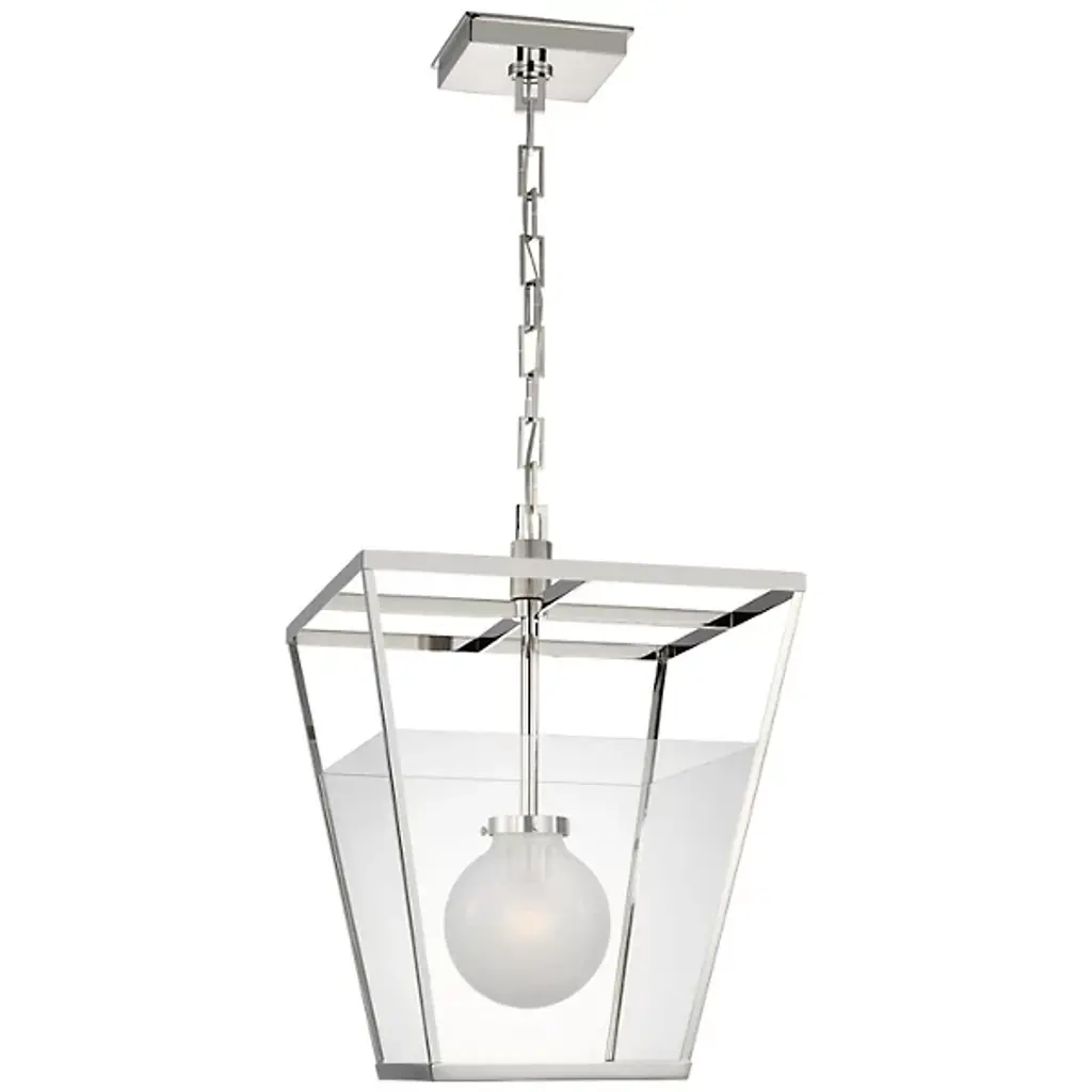 The Illume Pendant from Visual Comfort Signature offers the allure of simplicity to any space it adorns. Designed by Ray Booth, this fixture reframes traditional lantern forms, highlighting essential structures with a box frame suspended on a rectangular chain and adorned with a frosted globe. The pendant brings a charming touch to entryways, hallways, or even when suspended over a table. They can be used individually or in multiples to create a dramatic and captivating ambiance.