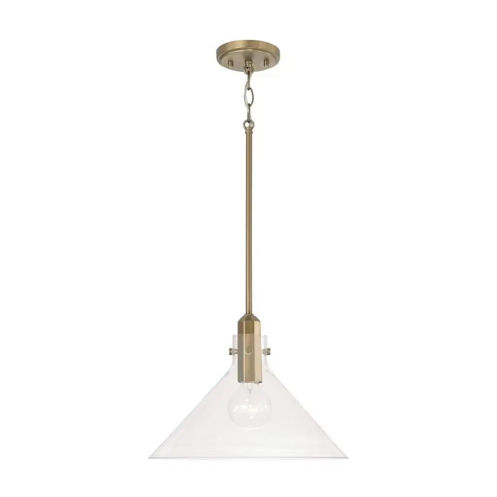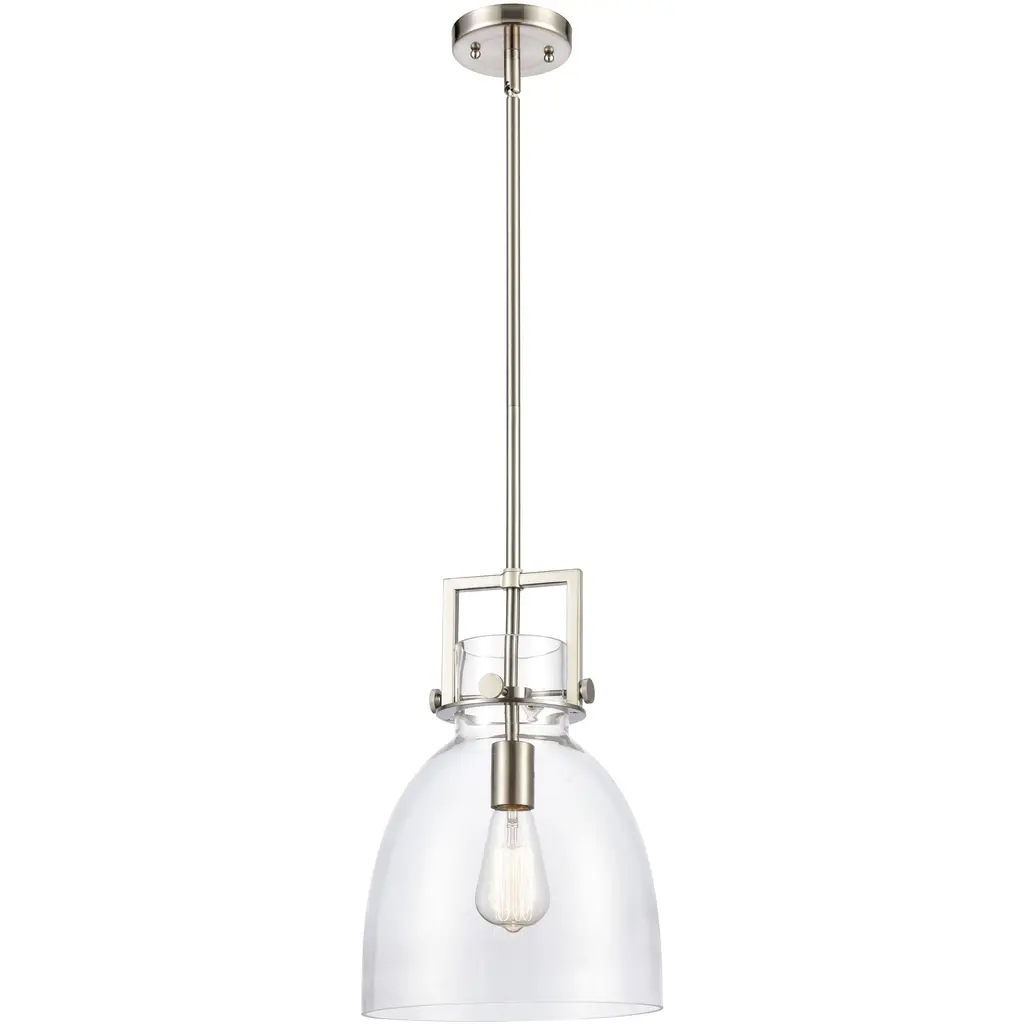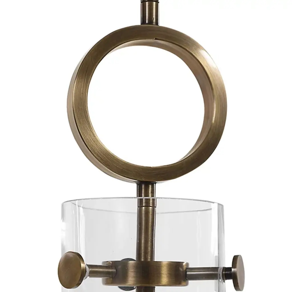 The Imbuto Pendant by Uttermost has a clean, contemporary design that brings a bright touch to its surroundings. Simply suspended by a single down rod and decorative, open loop, this piece supports a visible light source within a clear, flared glass shade. A beautiful finish dresses up the metal elements, lending this design a tailored touch as it offers plenty of illumination to its environment thanks to the crisp glass shade that defines its look.
