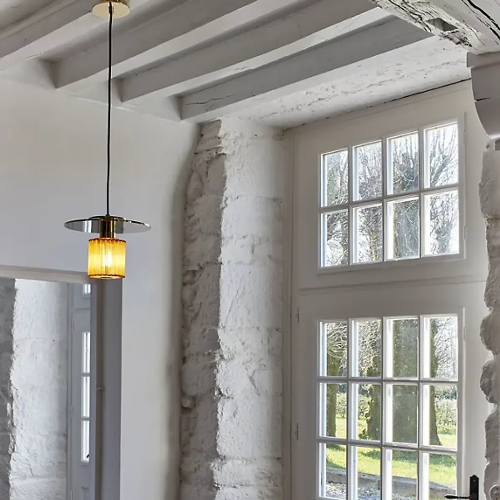 Bedeck your interior spaces with this delightful homage to the Sun King! The In The Sun Pendant from DCW Editions offers a simple, bold form that instantly transforms its surroundings. Designed by Dominique Perrault and Gaëlle Lauriot-Prévost, the pendant descends from a metal disc canopy via a woven fabric cord, terminating in another disc that holds a single downward-facing bulb under a clear glass shade. The glass is then wrapped in mesh pleated in the designers’ signature style, bringing warm and friendly notes to any room it is installed in.