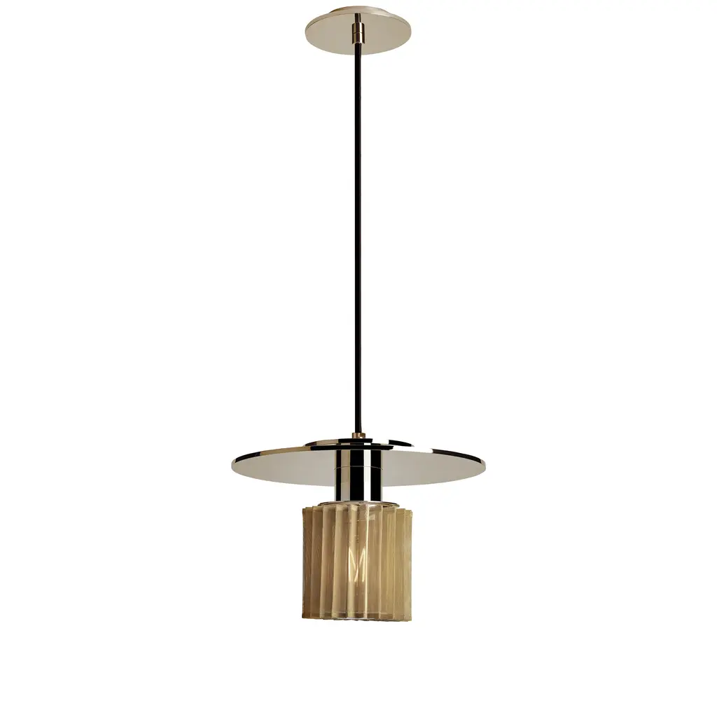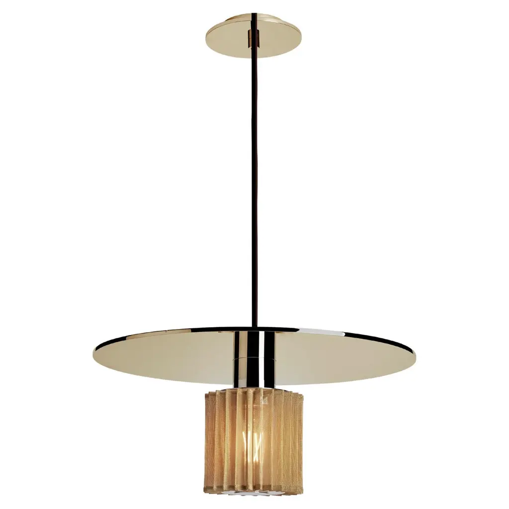 Bedeck your interior spaces with this delightful homage to the Sun King! The In The Sun Pendant from DCW Editions offers a simple, bold form that instantly transforms its surroundings. Designed by Dominique Perrault and Gaëlle Lauriot-Prévost, the pendant descends from a metal disc canopy via a woven fabric cord, terminating in another disc that holds a single downward-facing bulb under a clear glass shade. The glass is then wrapped in mesh pleated in the designers’ signature style, bringing warm and friendly notes to any room it is installed in.
