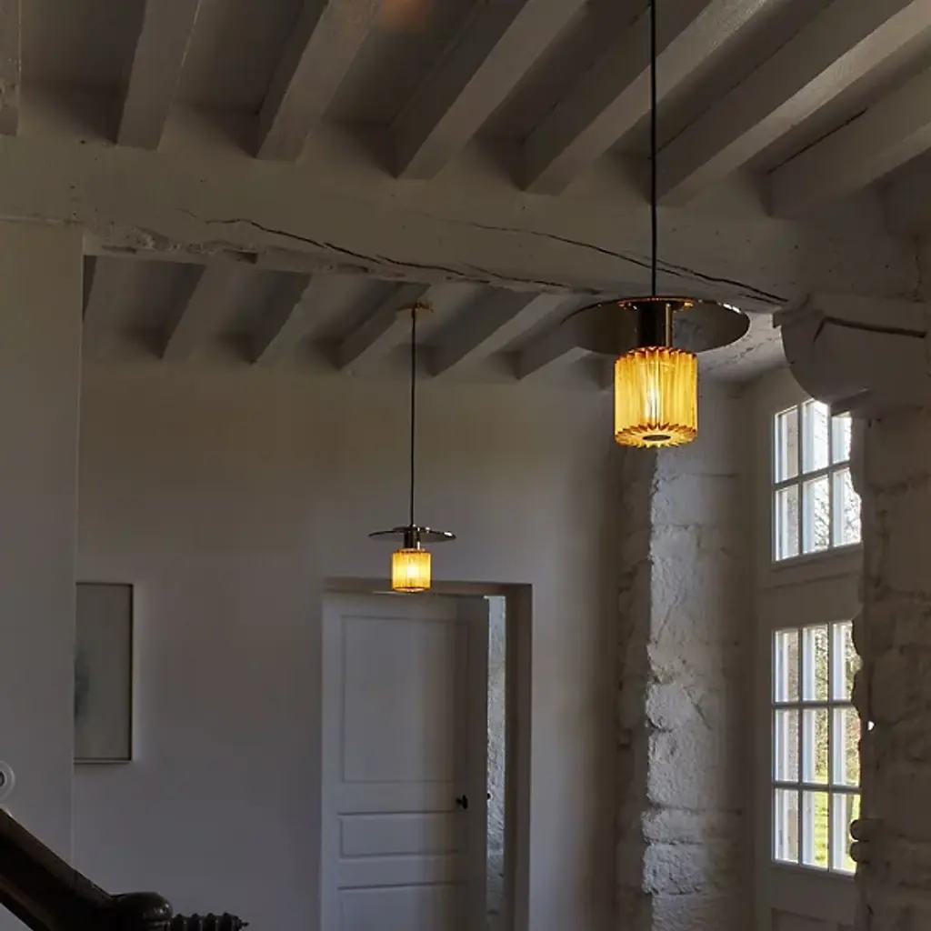 Bedeck your interior spaces with this delightful homage to the Sun King! The In The Sun Pendant from DCW Editions offers a simple, bold form that instantly transforms its surroundings. Designed by Dominique Perrault and Gaëlle Lauriot-Prévost, the pendant descends from a metal disc canopy via a woven fabric cord, terminating in another disc that holds a single downward-facing bulb under a clear glass shade. The glass is then wrapped in mesh pleated in the designers’ signature style, bringing warm and friendly notes to any room it is installed in.