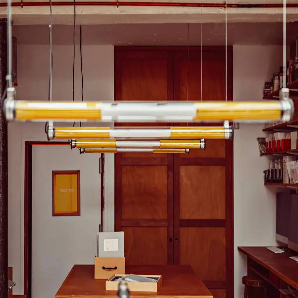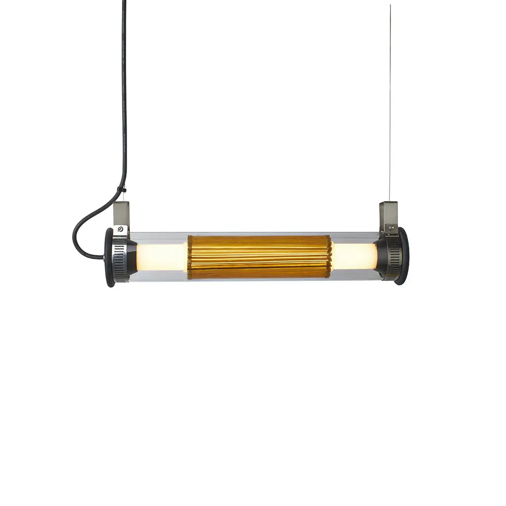 Bring industrial-inspired design to any environment with the Tube 360 Horizontal Outdoor Pendant Light from DCW editions. With its versatile design, this pendant brings a perfect balance of freedom and structure to any indoor or outdoor space. The elegant glass cylinders, paired with a removable mesh accent, create a captivating visual whether illuminated or not. Complete with stoppers on both ends, this pendant is the perfect addition to elevate any space. Highlights