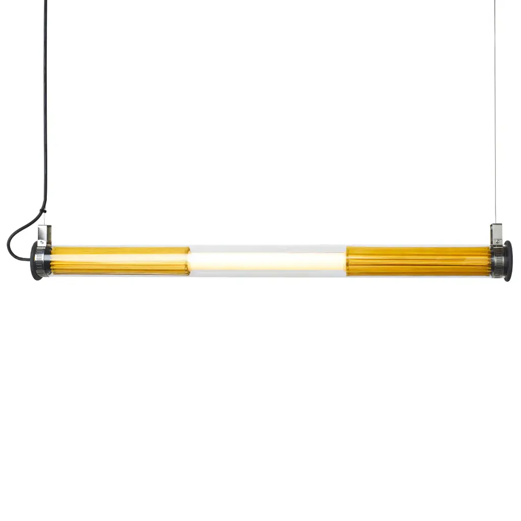 Bring industrial-inspired design to any environment with the Tube 360 Horizontal Outdoor Pendant Light from DCW editions. With its versatile design, this pendant brings a perfect balance of freedom and structure to any indoor or outdoor space. The elegant glass cylinders, paired with a removable mesh accent, create a captivating visual whether illuminated or not. Complete with stoppers on both ends, this pendant is the perfect addition to elevate any space. Highlights