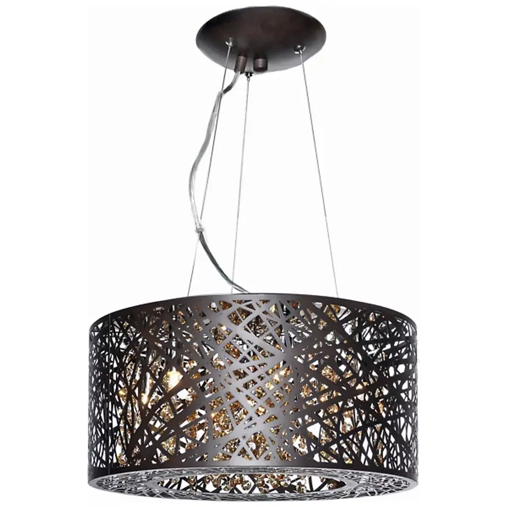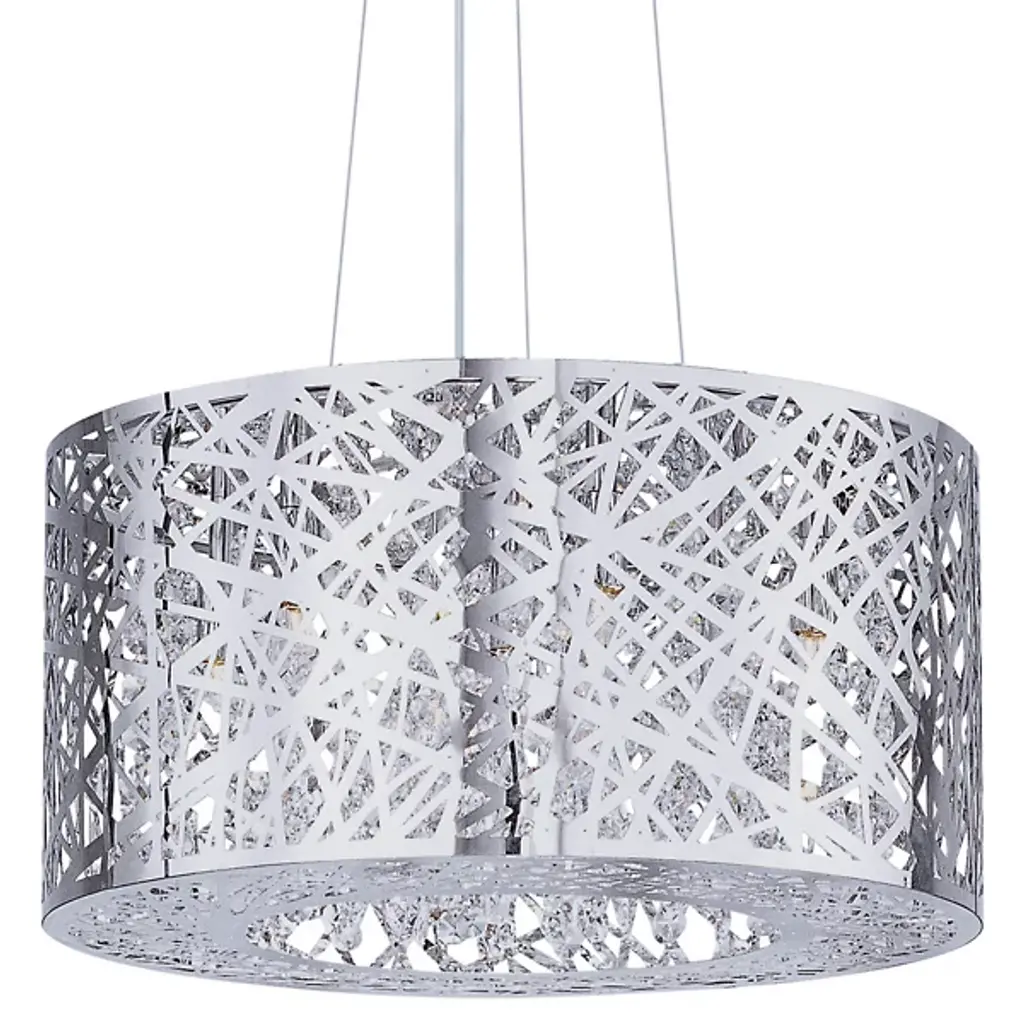 Similar to the legendary Incan tears of the sun, the ET2 Inca Drum Pendant features a glimmering metal exterior showing a radiant glimmer of golden riches inside. In the Inca Drum Pendant, a gold glow sparkles through a laser-cut chromed cylinder--perfectly illuminating the amazing treasure of crystal beads within.