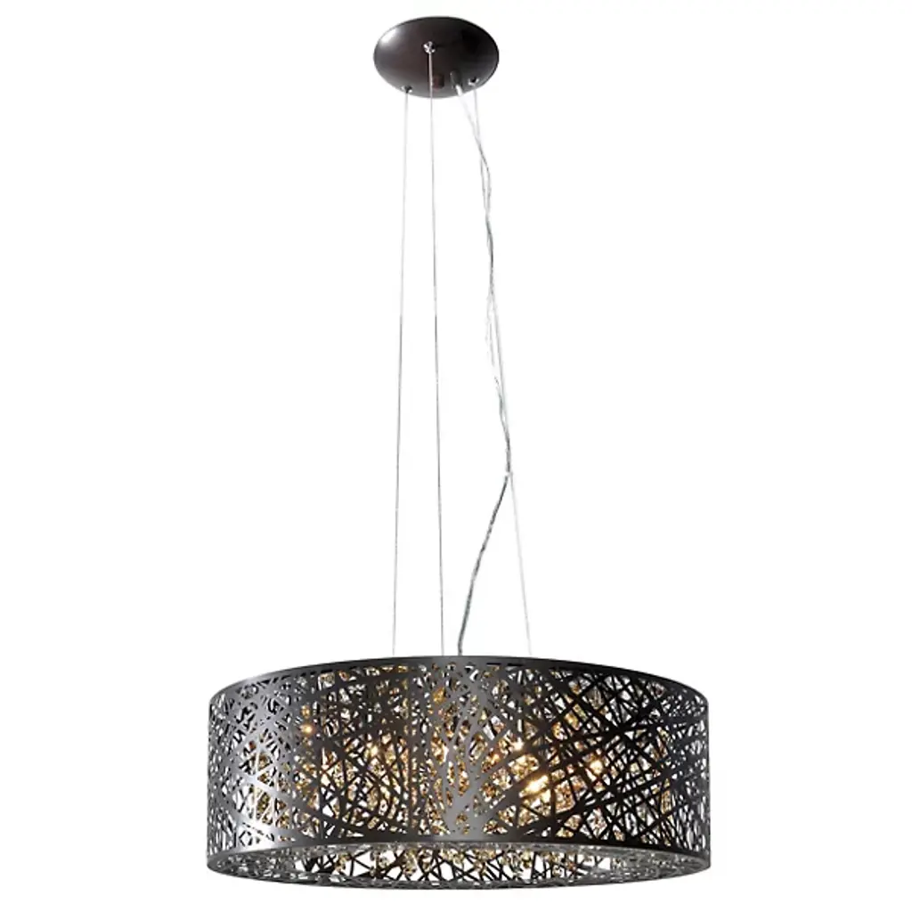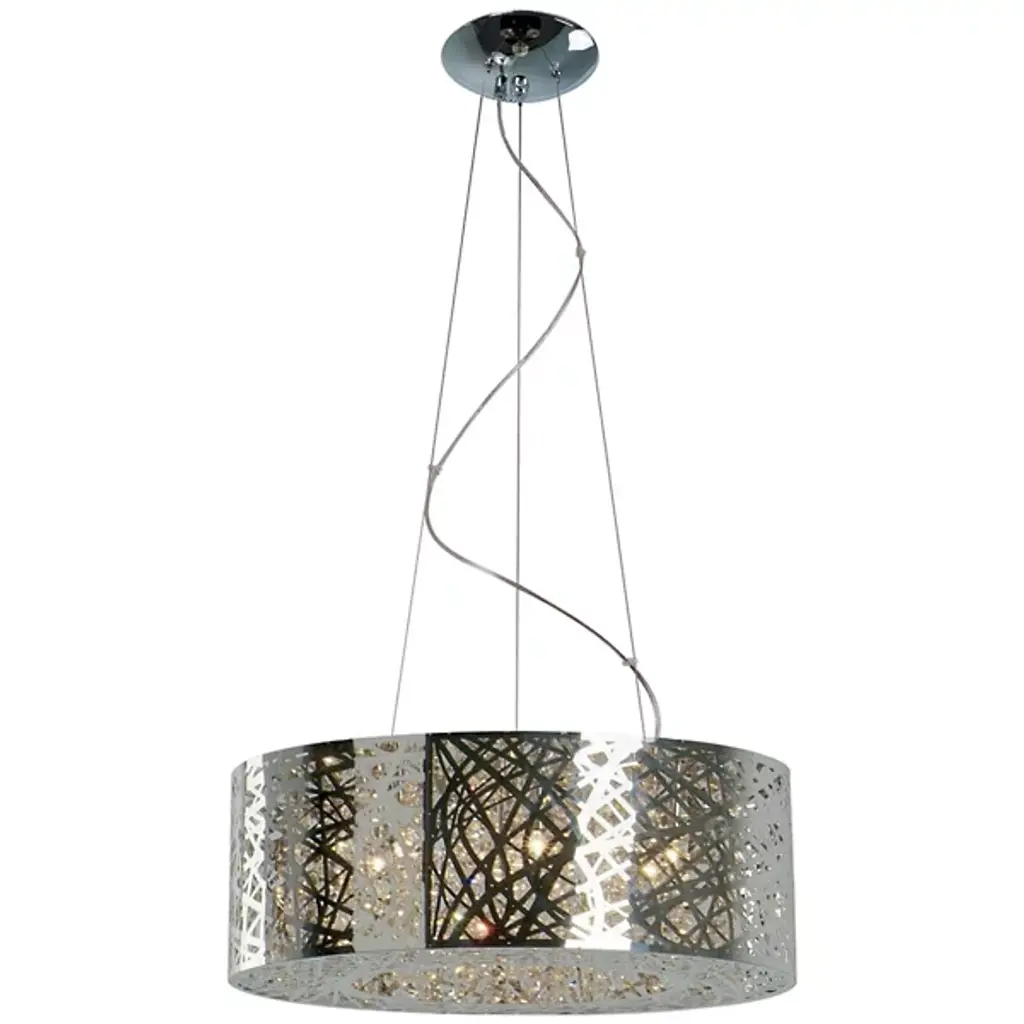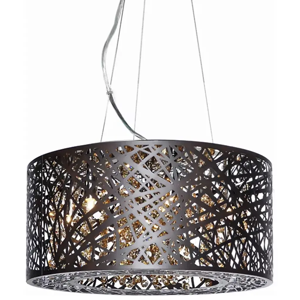 Similar to the legendary Incan tears of the sun, the ET2 Inca Drum Pendant features a glimmering metal exterior showing a radiant glimmer of golden riches inside. In the Inca Drum Pendant, a gold glow sparkles through a laser-cut chromed cylinder--perfectly illuminating the amazing treasure of crystal beads within.