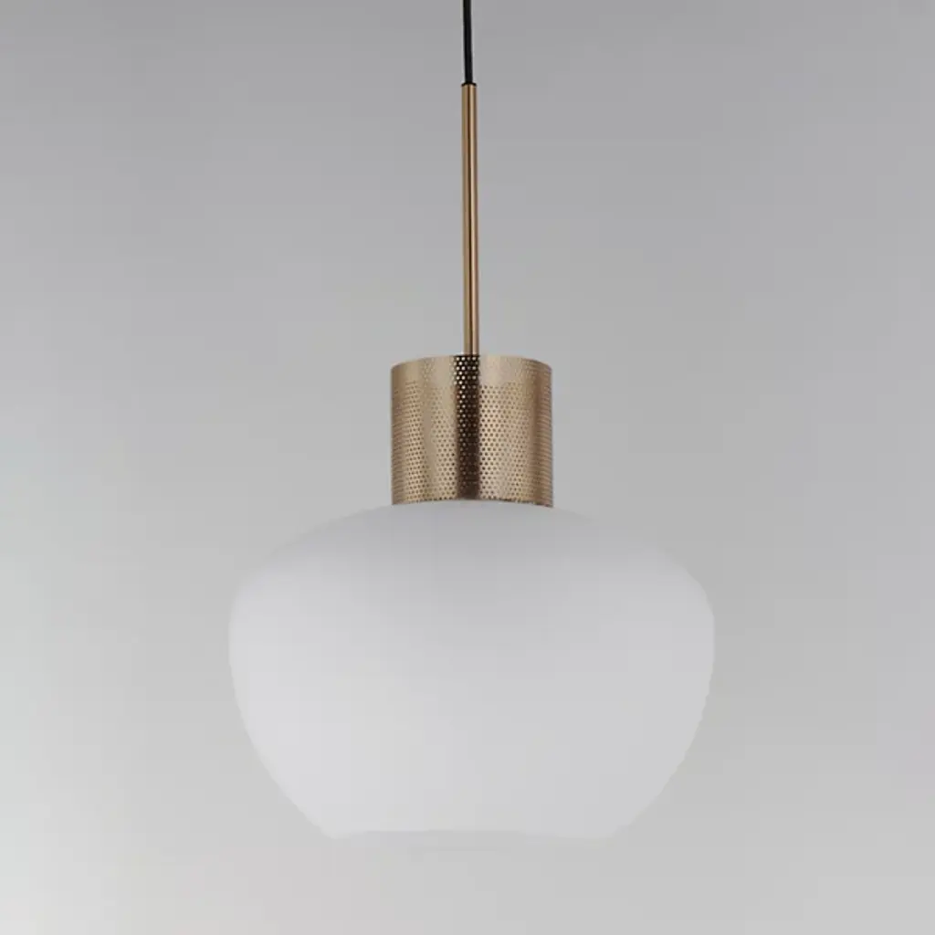 Veiled in enigmatic charm, the Incognito Pendant from Studio M reveals radiant luminosity emanating from concealed glass spheres nestled behind opaque shades. The shades are built with elongated, rounded shapes. These subtly distorted orbs cast a soft glow, complemented by refined metal detailing. With its sleek design and solid functionality, this pendant descends gracefully from a circular canopy via a slender cable and metal embellishment, blending retro allure with transitional sophistication.