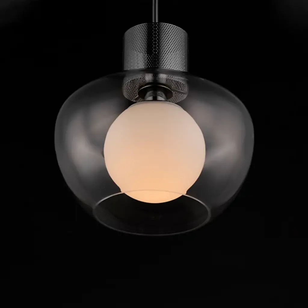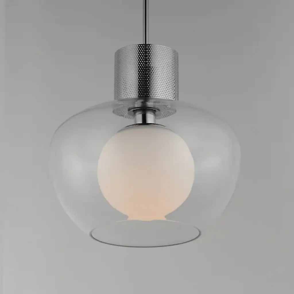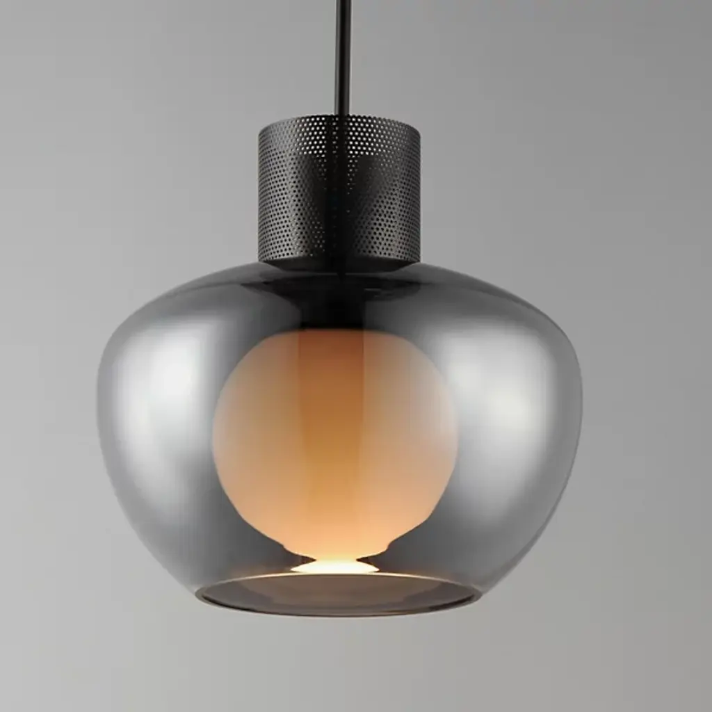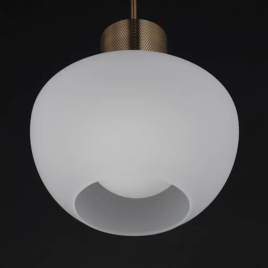 Veiled in enigmatic charm, the Incognito Pendant from Studio M reveals radiant luminosity emanating from concealed glass spheres nestled behind opaque shades. The shades are built with elongated, rounded shapes. These subtly distorted orbs cast a soft glow, complemented by refined metal detailing. With its sleek design and solid functionality, this pendant descends gracefully from a circular canopy via a slender cable and metal embellishment, blending retro allure with transitional sophistication.