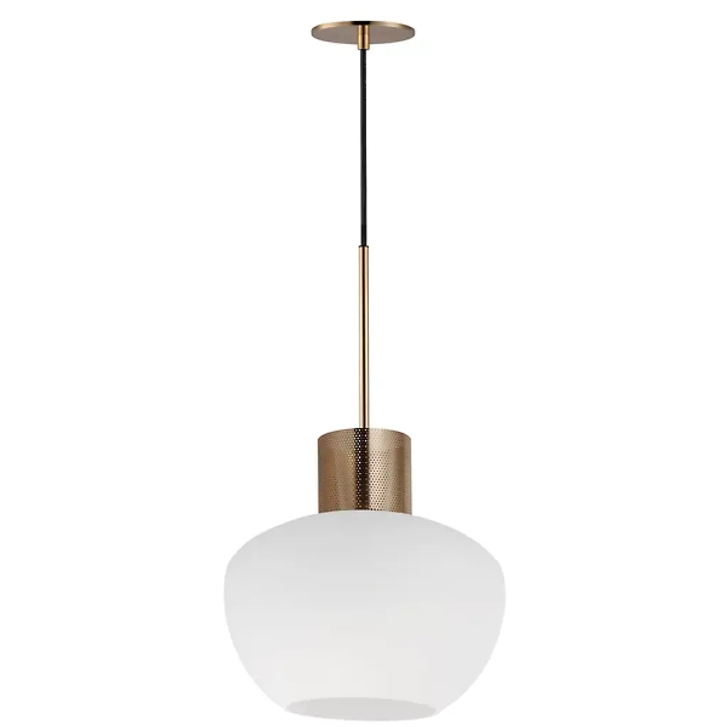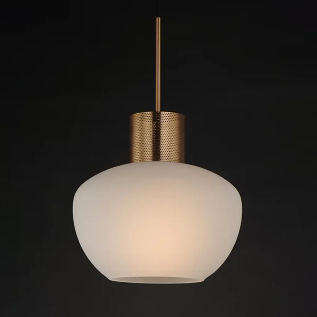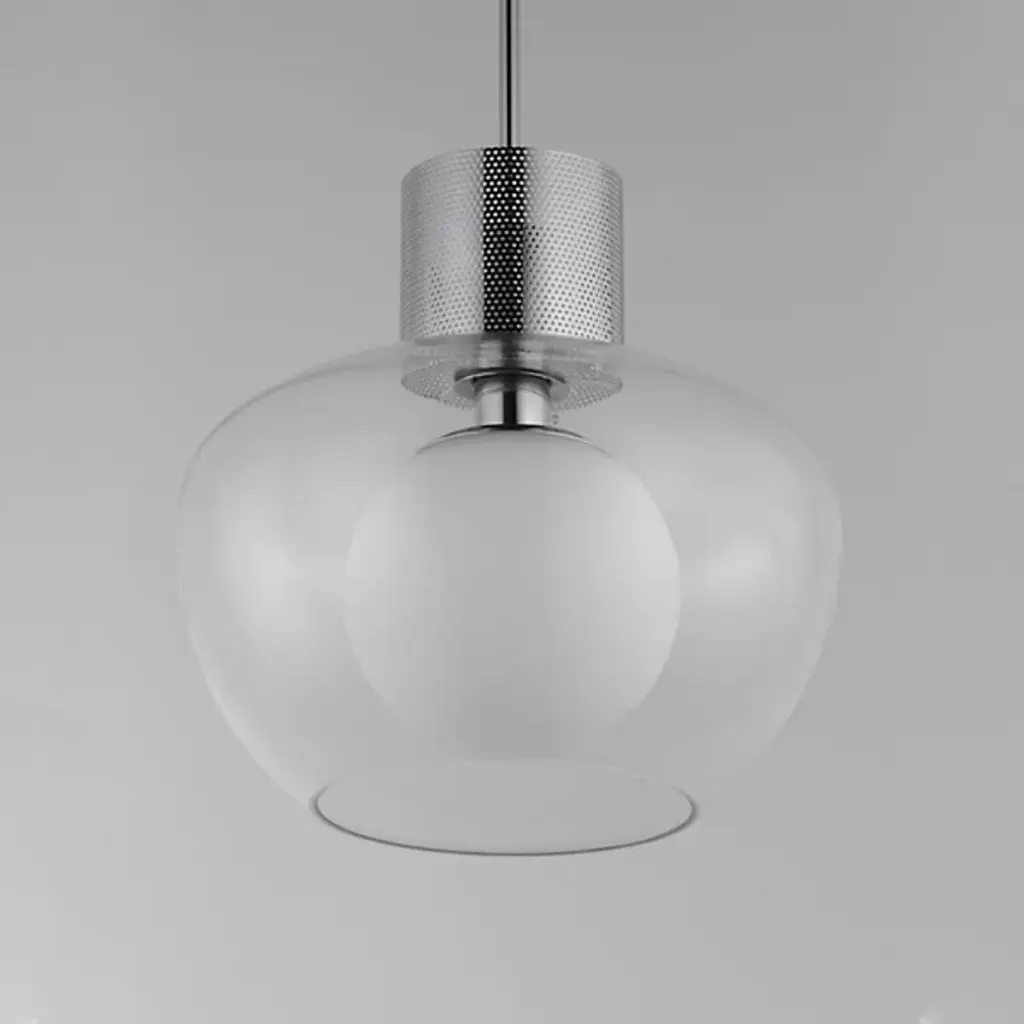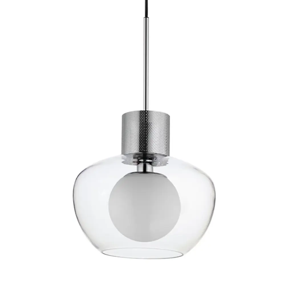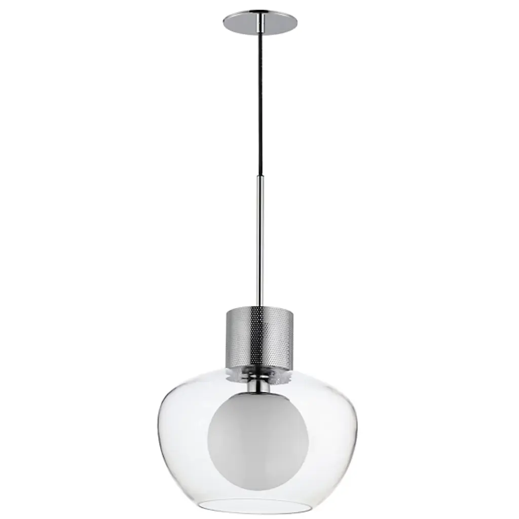 Veiled in enigmatic charm, the Incognito Pendant from Studio M reveals radiant luminosity emanating from concealed glass spheres nestled behind opaque shades. The shades are built with elongated, rounded shapes. These subtly distorted orbs cast a soft glow, complemented by refined metal detailing. With its sleek design and solid functionality, this pendant descends gracefully from a circular canopy via a slender cable and metal embellishment, blending retro allure with transitional sophistication.