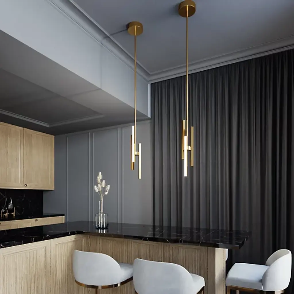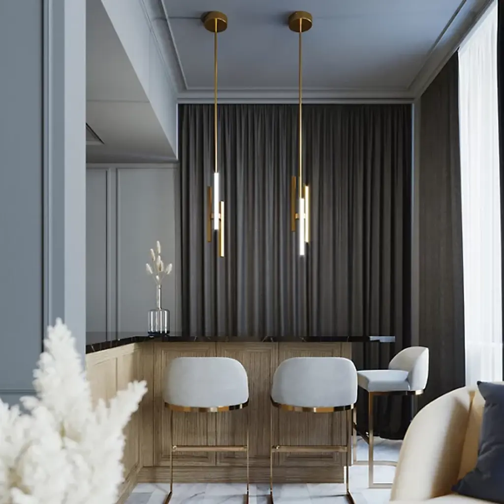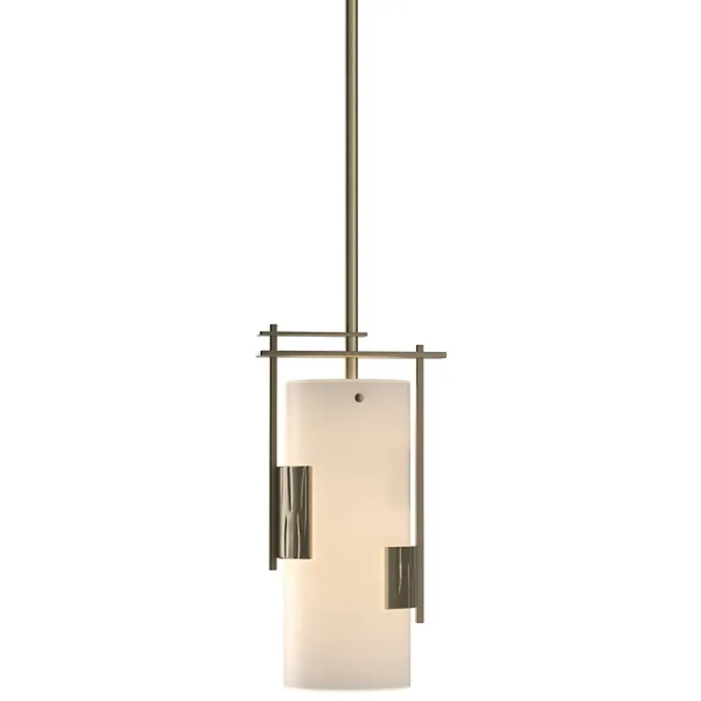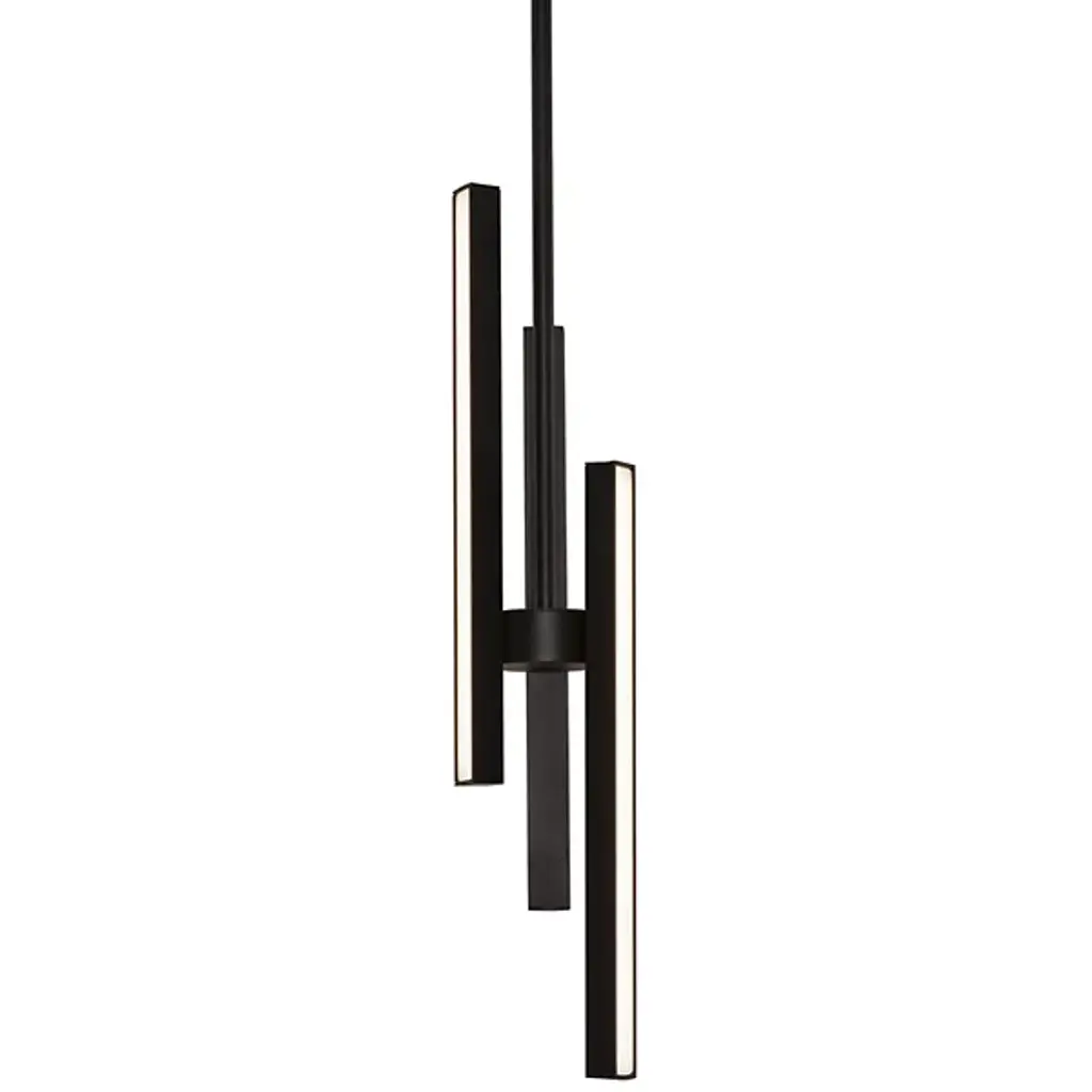 Sculptural pendant lighting for ultra-modern spaces. The Indra LED Mini Pendant by AFX Lighting has a narrow, geometric steel frame comprised of 3 vertical bars. Within each bar, an acrylic diffuser provides a smooth finishing touch over a column of integrated LEDs. The acrylic also diffuses the LED light that’s produced, transforming it into even, bright ambience. The useful light and artful style of this pendant makes it an eye-catching choice over a modern kitchen island or dining table.