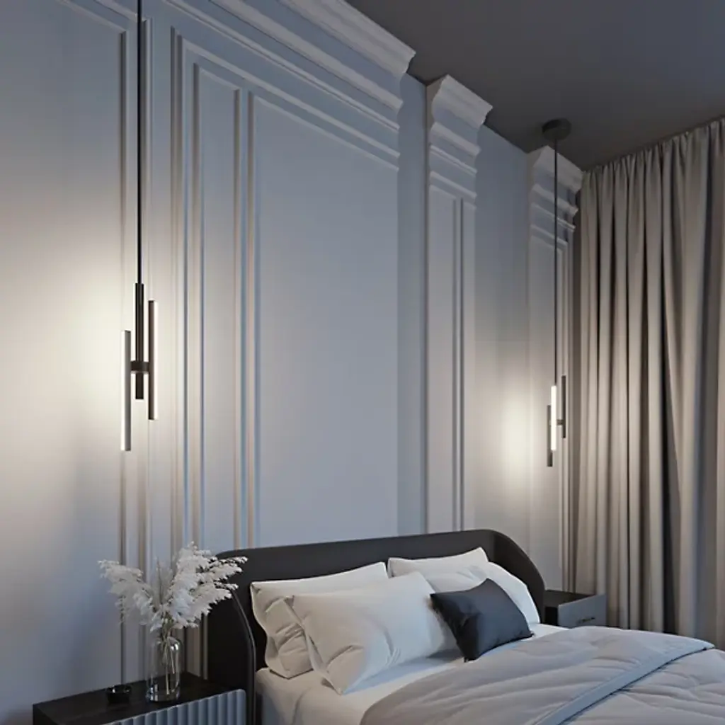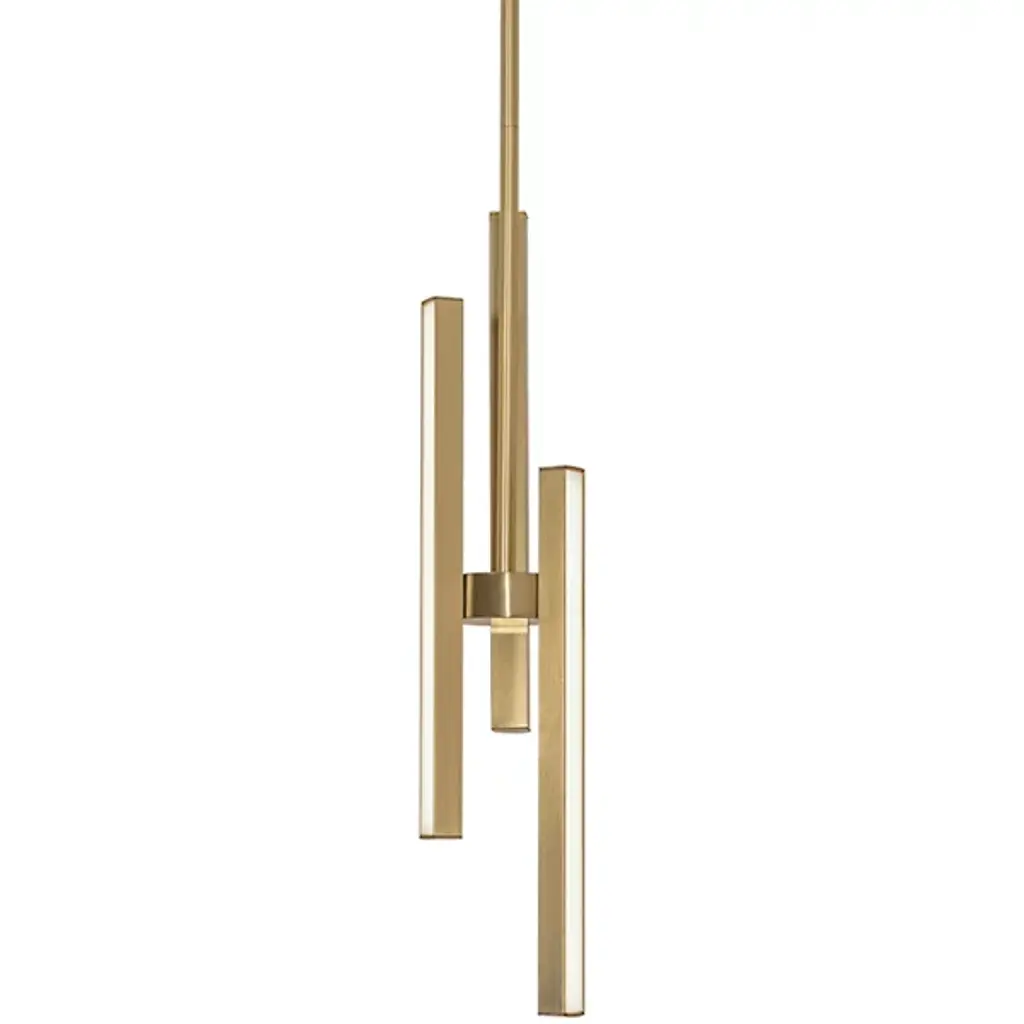 Sculptural pendant lighting for ultra-modern spaces. The Indra LED Mini Pendant by AFX Lighting has a narrow, geometric steel frame comprised of 3 vertical bars. Within each bar, an acrylic diffuser provides a smooth finishing touch over a column of integrated LEDs. The acrylic also diffuses the LED light that’s produced, transforming it into even, bright ambience. The useful light and artful style of this pendant makes it an eye-catching choice over a modern kitchen island or dining table.