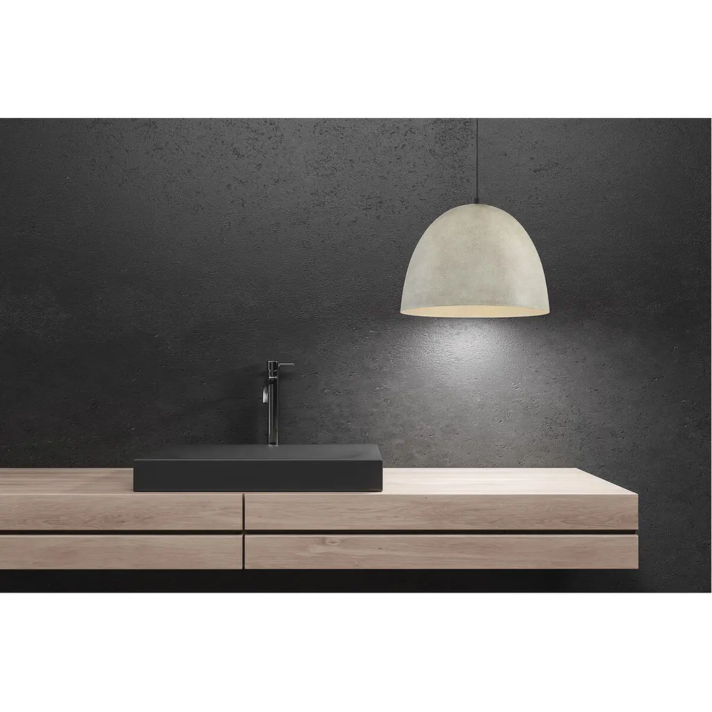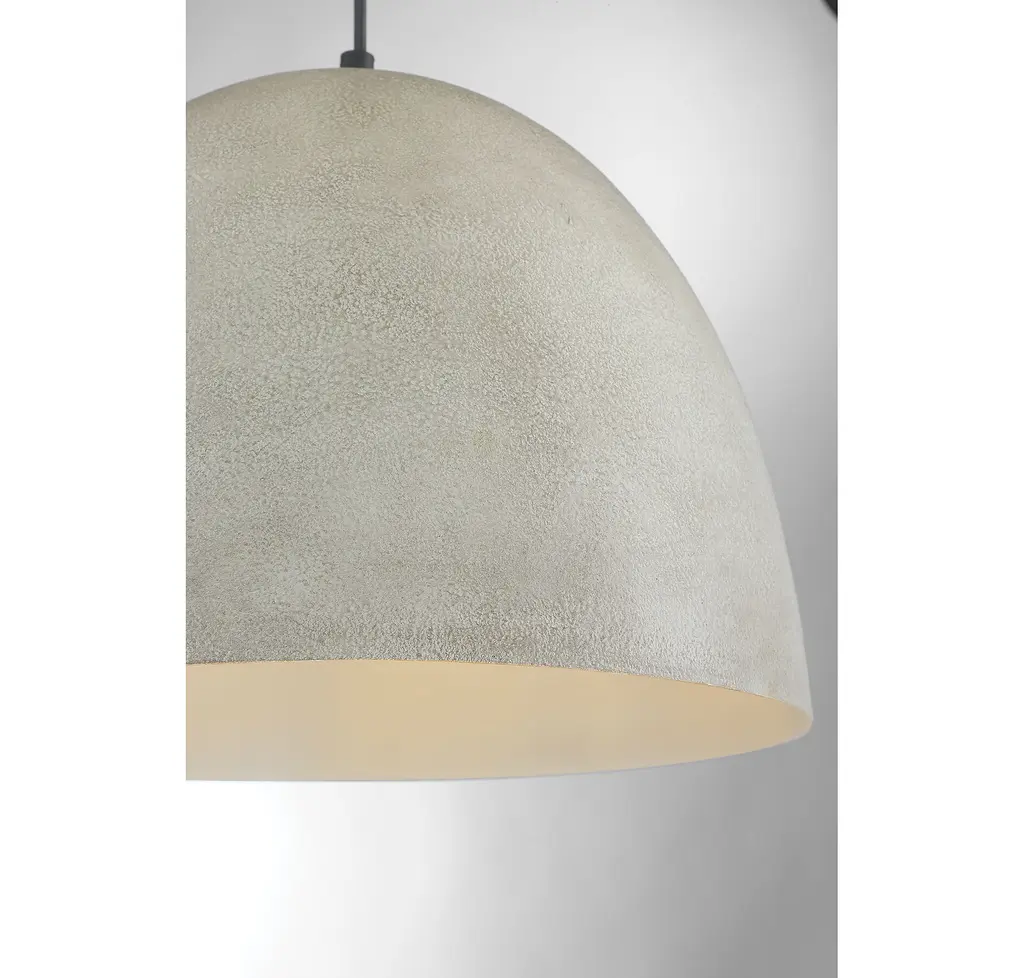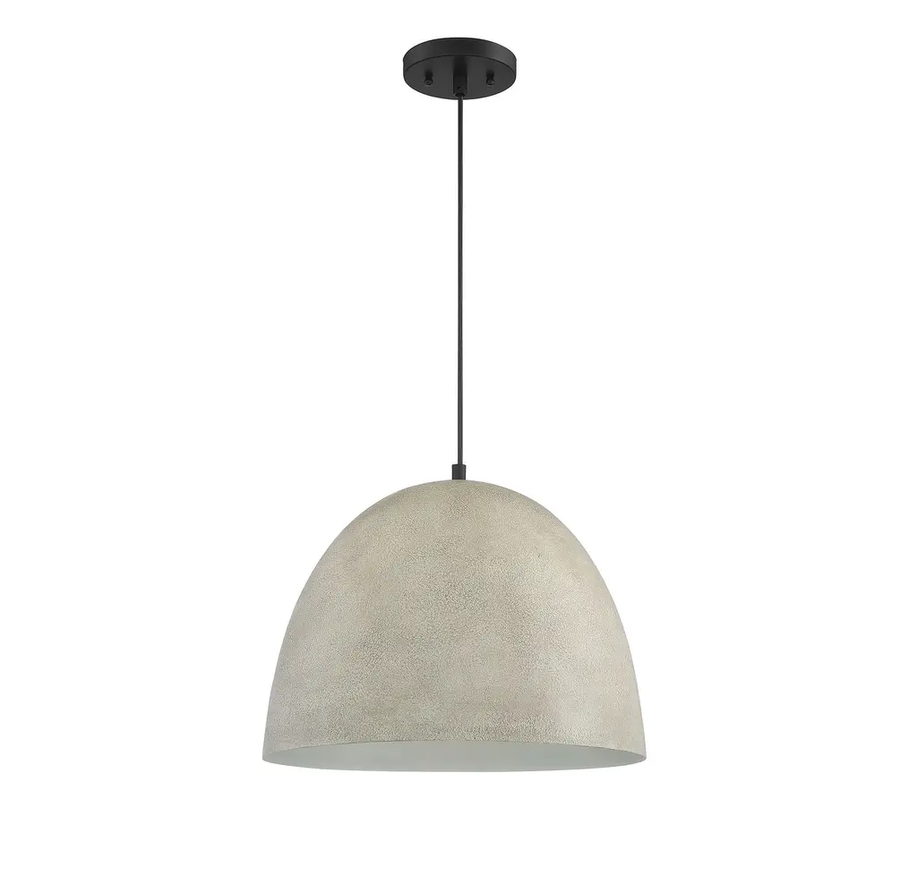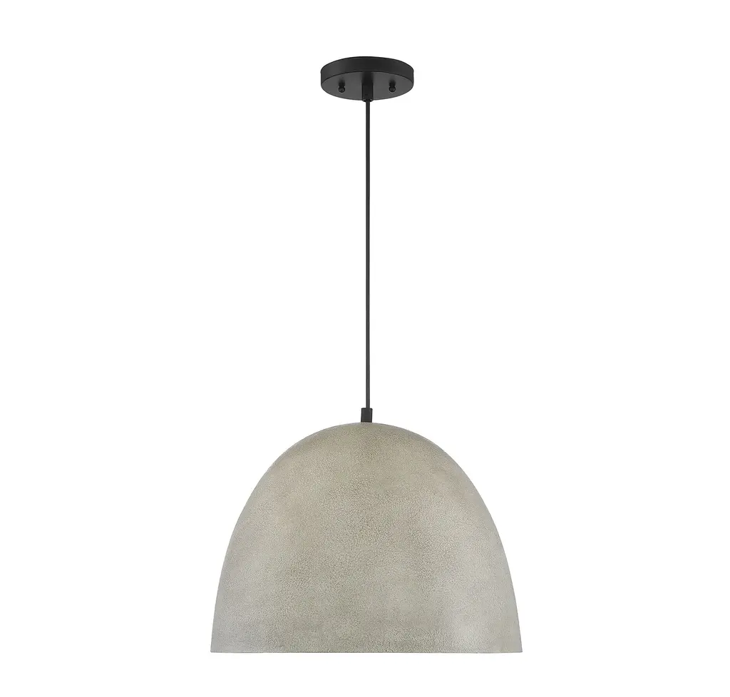 The bold and industrial look of concrete can be yours for an incredible price with this 1-light pendant. Featuring a large and gently curving shade in a Concrete finish, paired with a super sleek black hanging cord, it is sure to make your industrial style-loving heart sing It is 12" in height and 16" in width, plus it comes with 120" of cord to let you adjust the hanging height as needed. It uses 1 standard size bulb of up to 60 watts, is LED compatible and is dimmable.