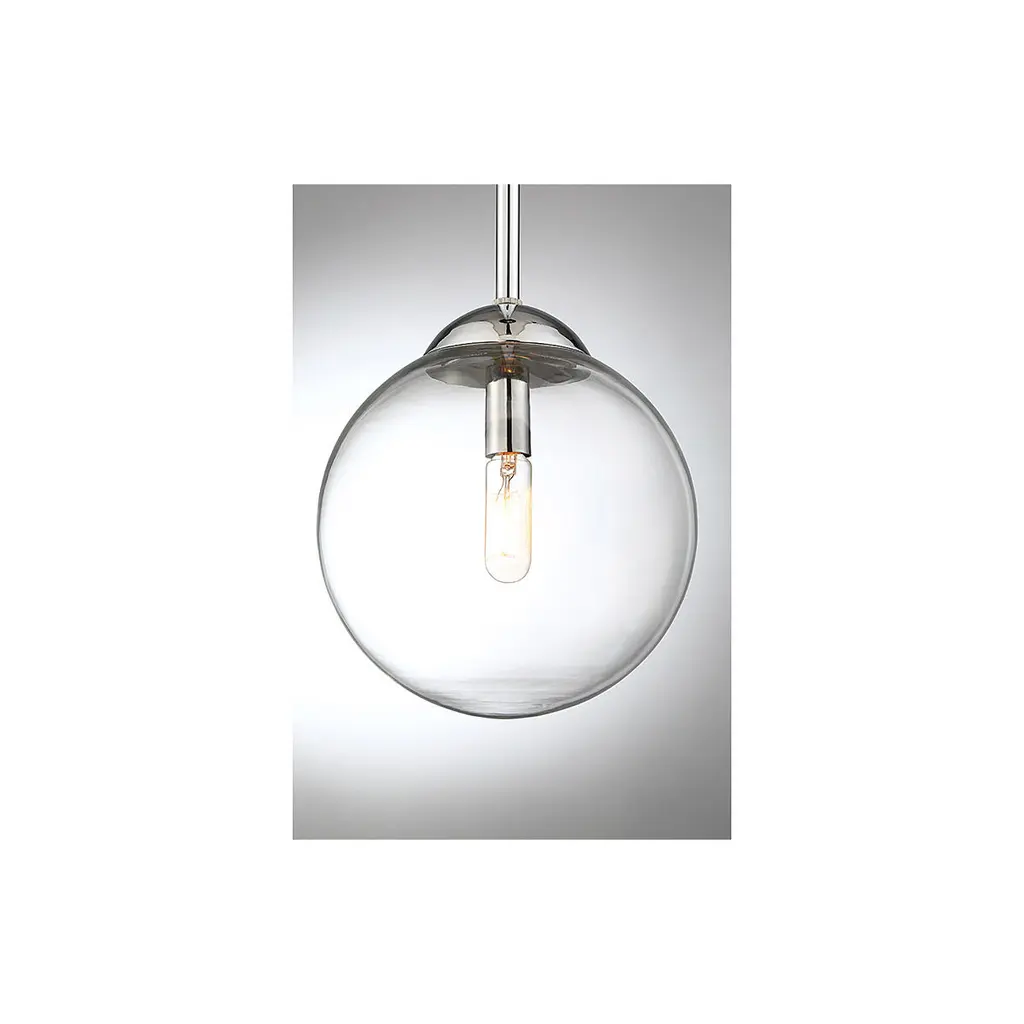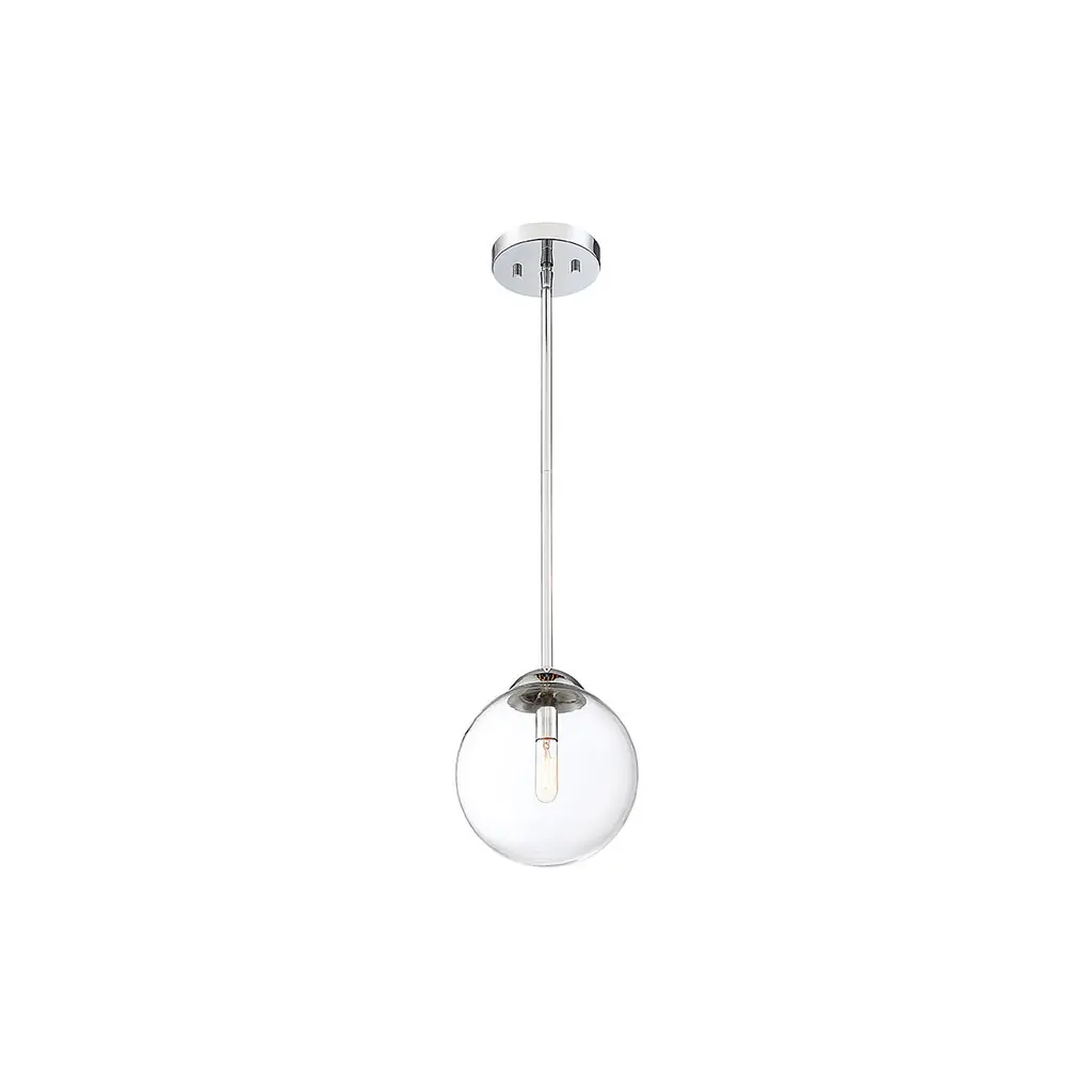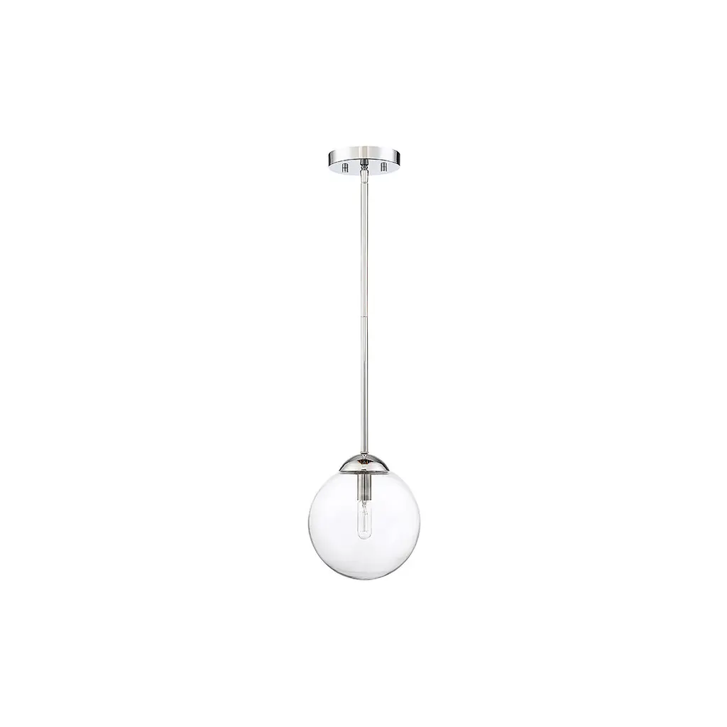 Get mid-century modern inspired style for your home with this 1-light mini pendant, featuring an orb shade of clear glass. Finished in chrome. 8.75" in height and 8" in width.