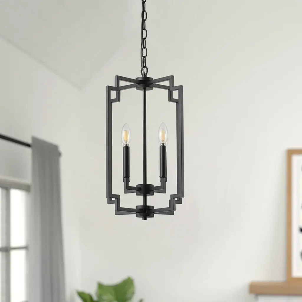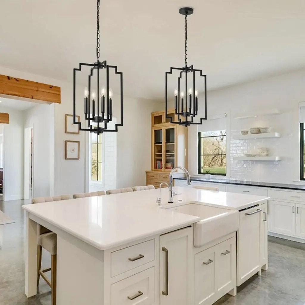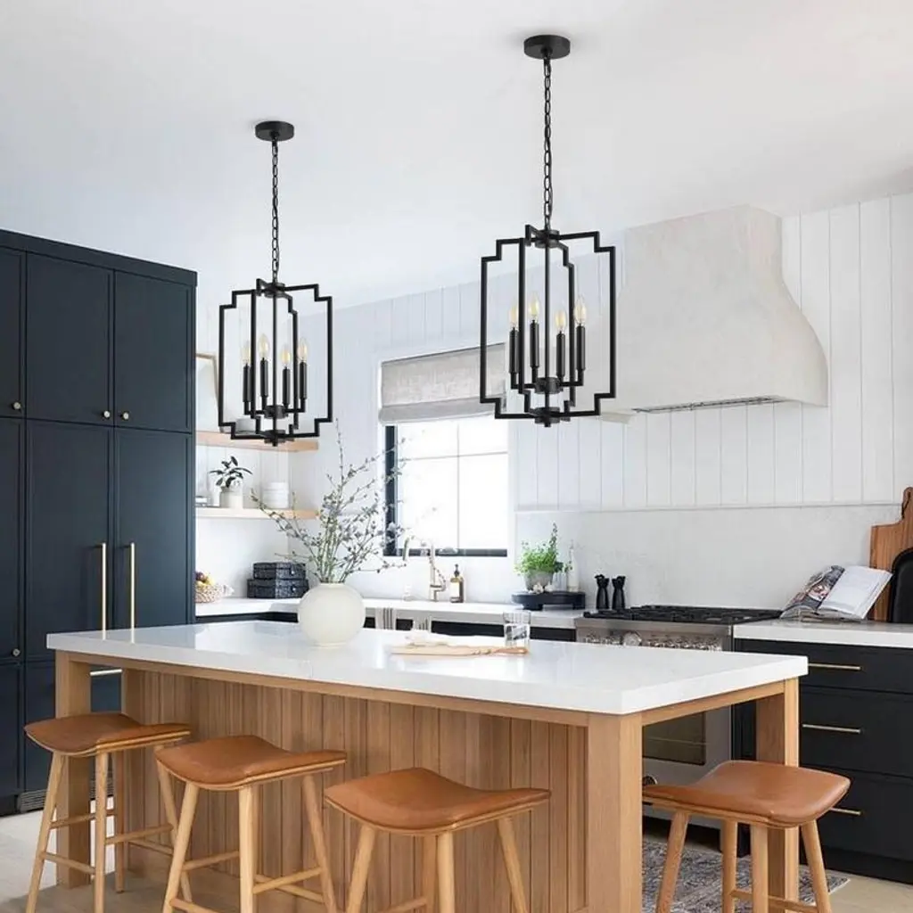 Specifications: Modern Industrial Design:This 4-light pendant chandelier features a sleek open cage frame in a matte black spray-painted finish, perfect for enhancing modern, industrial, or farmhouse interiors.Durable Iron Construction: Crafted from high-quality iron, including the canopy and frame, this fixture ensures long-lasting strength and stability.Easy to Assemble: Don't worry about the installation difficulty. It can be mounted facing up or down to suit your space and lighting needs.E12 Socket Compatibility: ETL Listed for your safety. The light is a built-in standard E12 socket, suggest using a dimmable E12*4 base bulb (Max 40W, 120V). Bulbs and dimmer switch not included.Widely Used: Ideal for dining rooms, entryways, kitchens, or stairwells, offering a bold statement and ample illumination without taking up visual space.