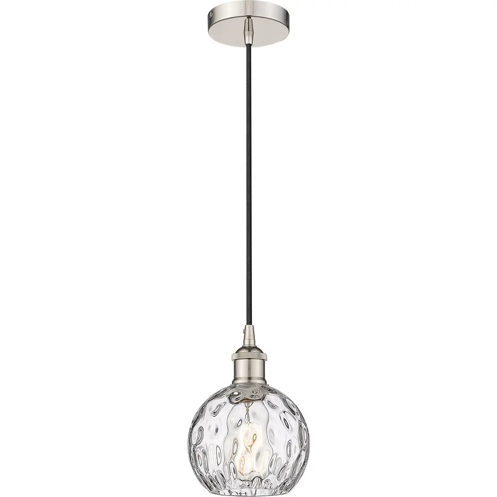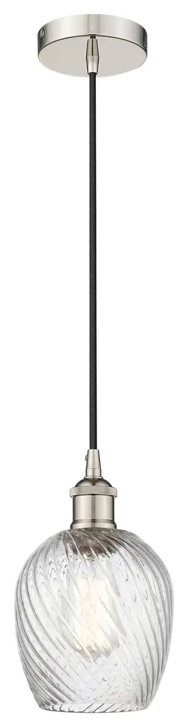 Innovations 616-1P-PN-G292 1-Light Mini Pendant Polished Nickel. Collection: Edison. Style: Industrial, Modern Contempo, Restoration-Vintage, Transitional. Metal Finish: Polished Nickel. Metal Finish (Canopy/Backplate): Polished Nickel. Material: Steel, Cast Brass, Glass. Dimension(in): 10(H) x 5(W) x 5(Dia). Min/Max Height (Fixture Height with Cord or Included Stems and Canopy)(in): 12. 75/130. 75. Wire/Cord: 10 Feet Of Black Fabric Cord. Bulb: (1)60W Medium Base,Dimmable(Not Included). Maximum Wattage Per Socket: 100. Voltage: 120. Color Temperature (Kelvin): 2200. CRI: 99. 9. Lumens: 220. Glass Shade Description: Clear Spiral Fluted Salina. Glass or Metal Shade Color: Clear Spiral Fluted. Shade Material: Glass. Glass Type: Transparent. Shade Shape: Globe. Shade Dimension(in): 5(W) x 6(H). Fitter Measurement (Glass Or Metal Shade Fitter Size): Neckless with a 2. 125 inch Hole. Canopy Dimension(in): 4. 75(Dia) x 1(H). Sloped Ceiling Compatible: Yes. California Proposition 65 Warning Required: Yes. UL and ETL Certification: Damp Location.