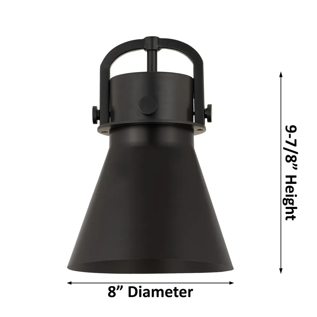 The Newton Cone is a modern industrial collection that incorporates exceptional architectural details and an equally striking cone shaped shade. The geometric shape of the glass or metal shade give this collection a charming and timeless presence.Features:Dimensions:Electrical Specifications: