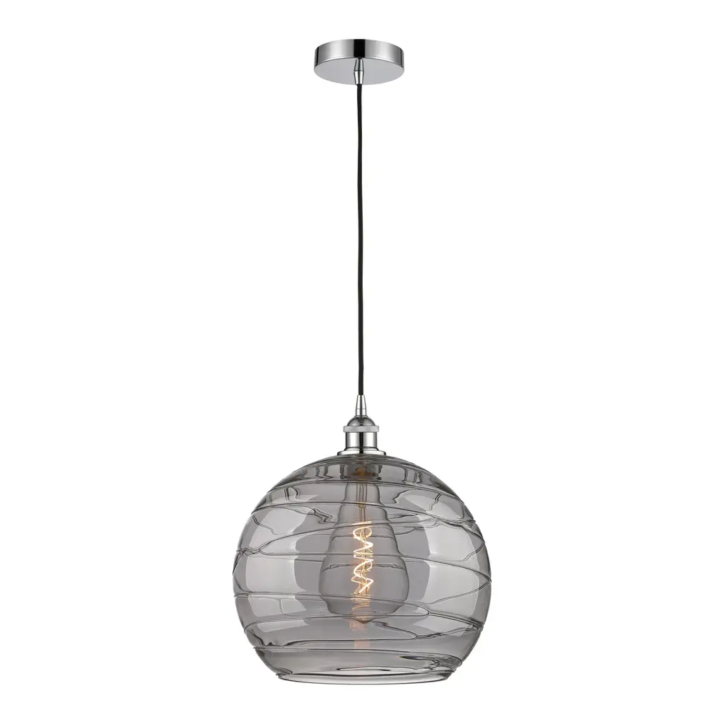 Innovations Lighting 616-1P 15 14 Athens Deco Swirl Pendant Athens - Polished Chrome / Light Smoke Deco Swirl