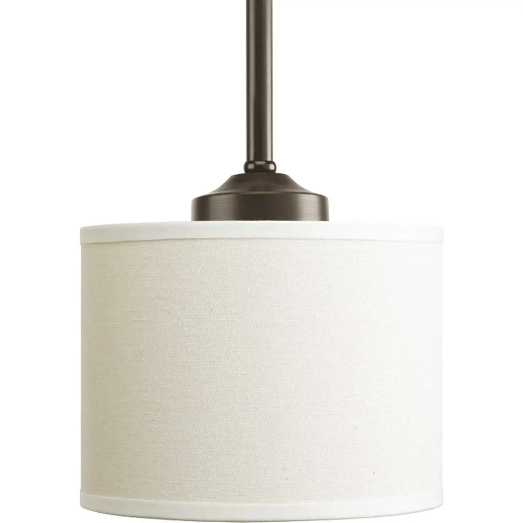 Harkening back to a simpler time, the Inspire Collection freshens traditional forms with flowing lines. This one-light mini-pendant features an off-white linen fabric shade and Antique Bronze.