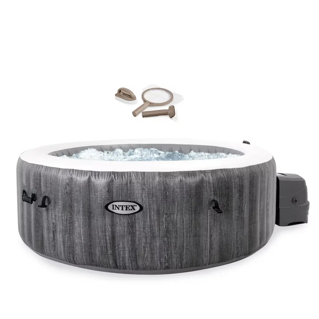 Intex Purespa Plus Greywood Inflatable Hot Tub Bubble Jet Spa, Hot Tub Maintenance Accessory Kit, And Slip Resistant Inflatable Removable Hot Tub Seat