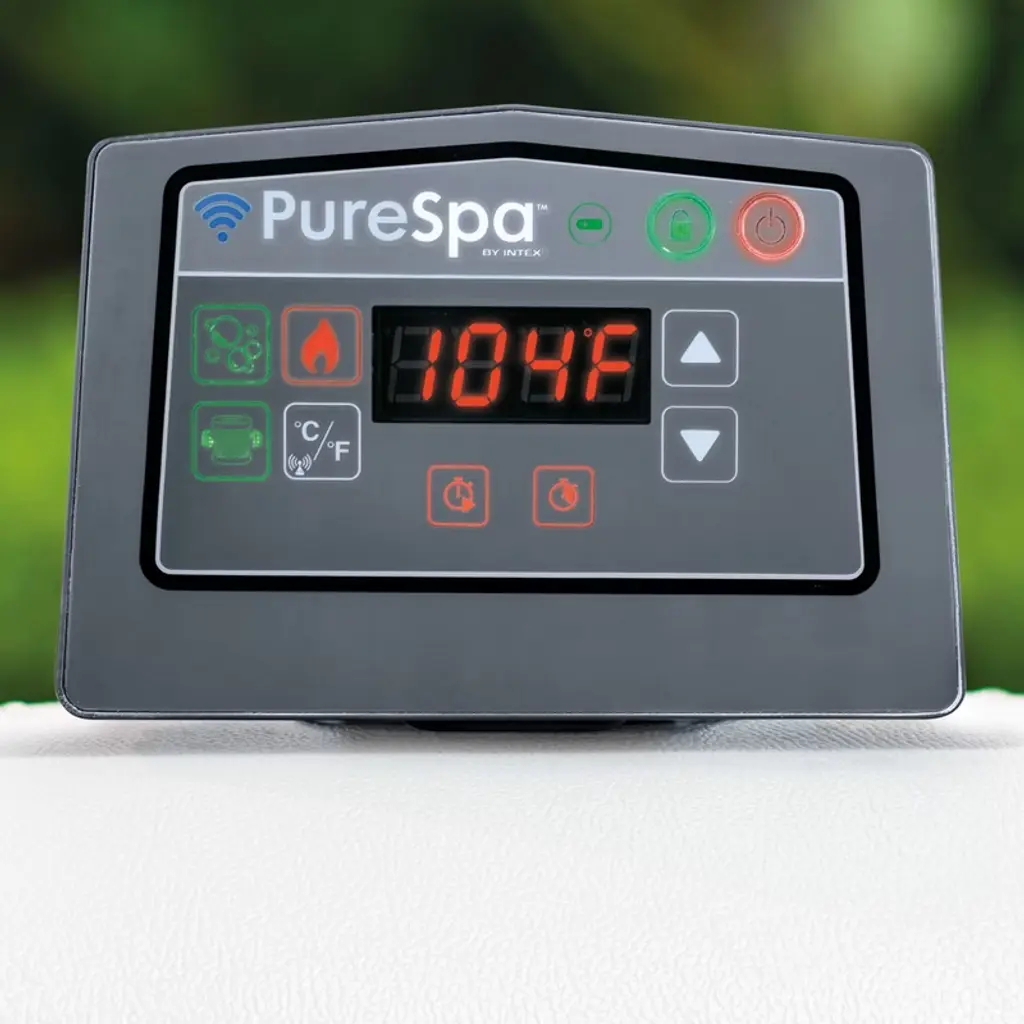 Let your worries bubble away as you unwind with the Intex PureSpa Plus Inflatable Hot Tub, Maintenance Accessories Kit, and Inflatable Seat. The PureSpa provides relaxation for up to 6 people, featuring an easy-to-use control panel that activates 140 high-powered bubble jets for a refreshing massage. This spa features built-in LED lighting, headrests, and a hard water treatment system. Set up is easy and ready for water in just about 20 minutes. The package includes the tub, cover, heating and filtration system, color-changing light, 2 filter cartridges, 2 headrests, thermal ground cloth, inflation hose, carry bag, chlorine dispenser, and test strip. Keep your PureSpa clean with this maintenance kit that includes a curved brush, durable mesh skimmer, and scrubber pad to help remove tough dirt and grime. Once you get all the debris out from your hot tub, sink back and relax in luxury. The slip-resistant PureSpa seat provides additional height of either 3 or 5.80 inches for added comfort. This spa seat has a laminated finish to protect against wear and tear. Enjoy relaxing evenings with your loved ones in the PureSpa Plus Inflatable Hot Tub with Maintenance Accessories Kit and Inflatable Seat from Intex.