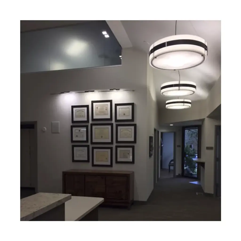 The Ultralights Invicta 16355 30-Inch LED Drum Pendant takes a simple shape and makes it intriguing. The large round shade is brought to life with simple metal banding, featuring exposed hardware for a dose of texture and industrial style. Simple with just the right amount of detail, this round piece will light your space with a modern flare that also utilizes the latest in lighting technology.