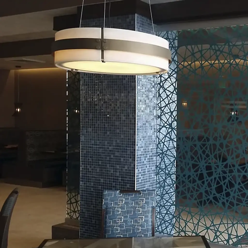The Ultralights Invicta 16355 36-Inch LED Drum Pendant takes a simple shape and makes it intriguing. The large round shade is brought to life with simple metal banding, featuring exposed hardware for a dose of texture and industrial style. Simple with just the right amount of detail, this round piece will light your space with a modern flare that utilizes the latest in lighting technology.