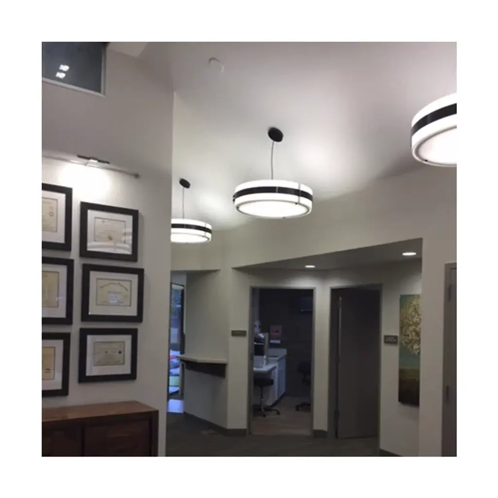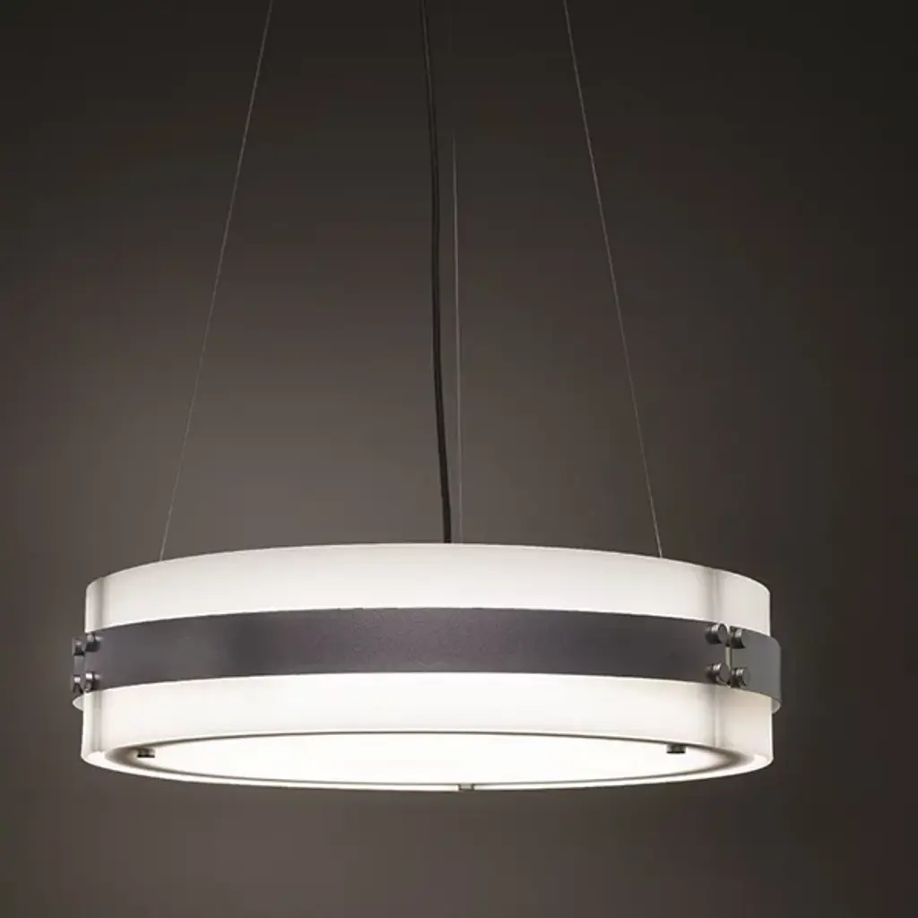 The Ultralights Invicta 16355 36-Inch LED Drum Pendant takes a simple shape and makes it intriguing. The large round shade is brought to life with simple metal banding, featuring exposed hardware for a dose of texture and industrial style. Simple with just the right amount of detail, this round piece will light your space with a modern flare that utilizes the latest in lighting technology.